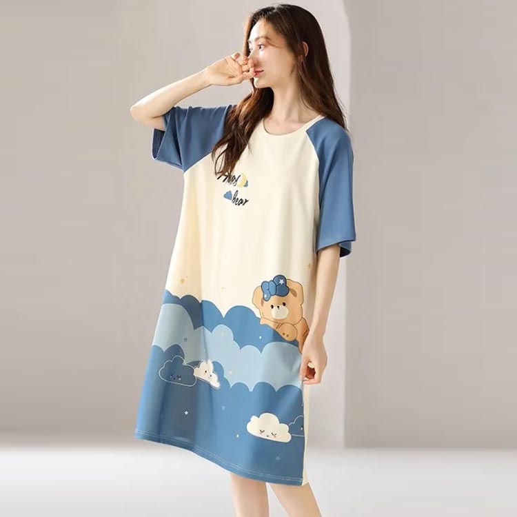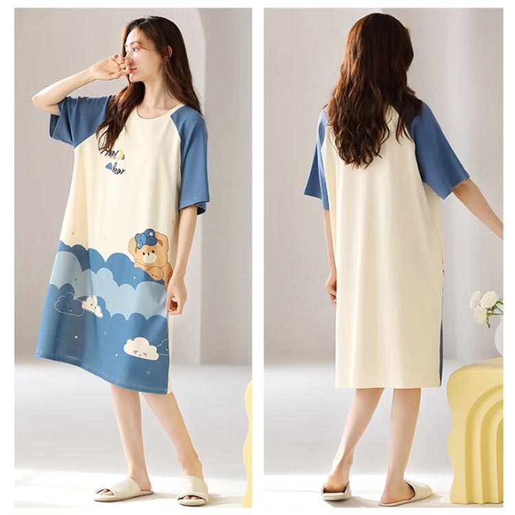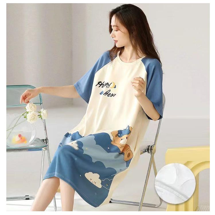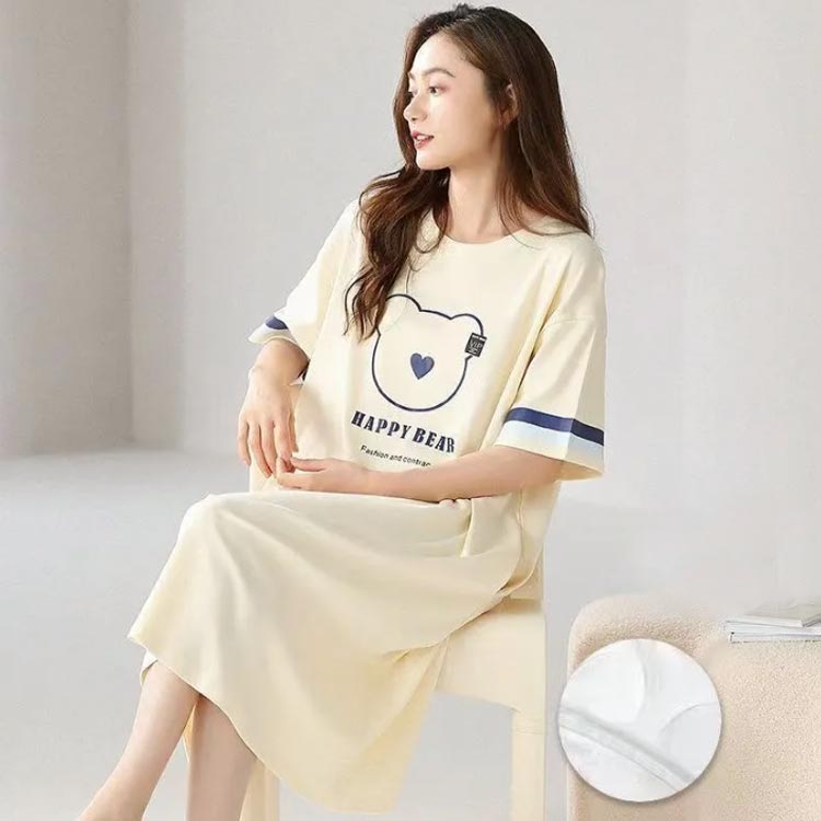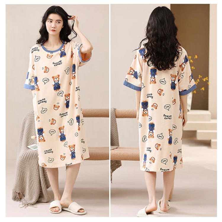 パジャマ カップ付き ワンピース レディース 膝丈 半袖 ワンピース 女性 ルームウェア ロングTシャツ 熊 英字 部屋着 ワンピ リラックス 可愛い ゆったり 薄手 涼しい 柔らかい 春夏 夏服