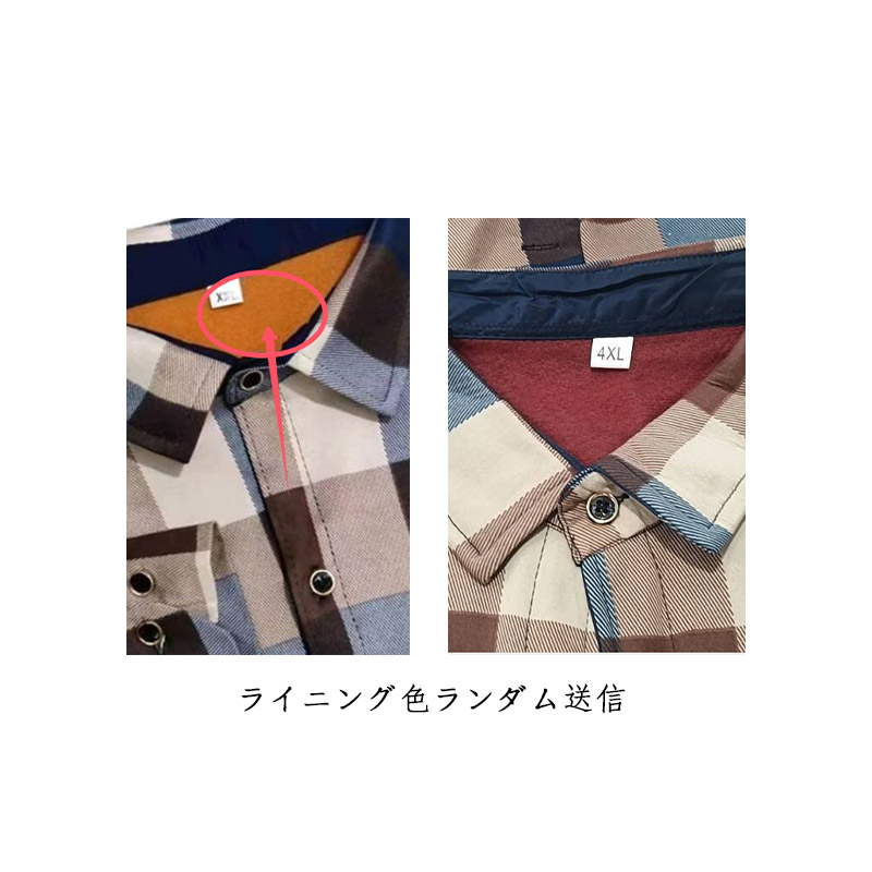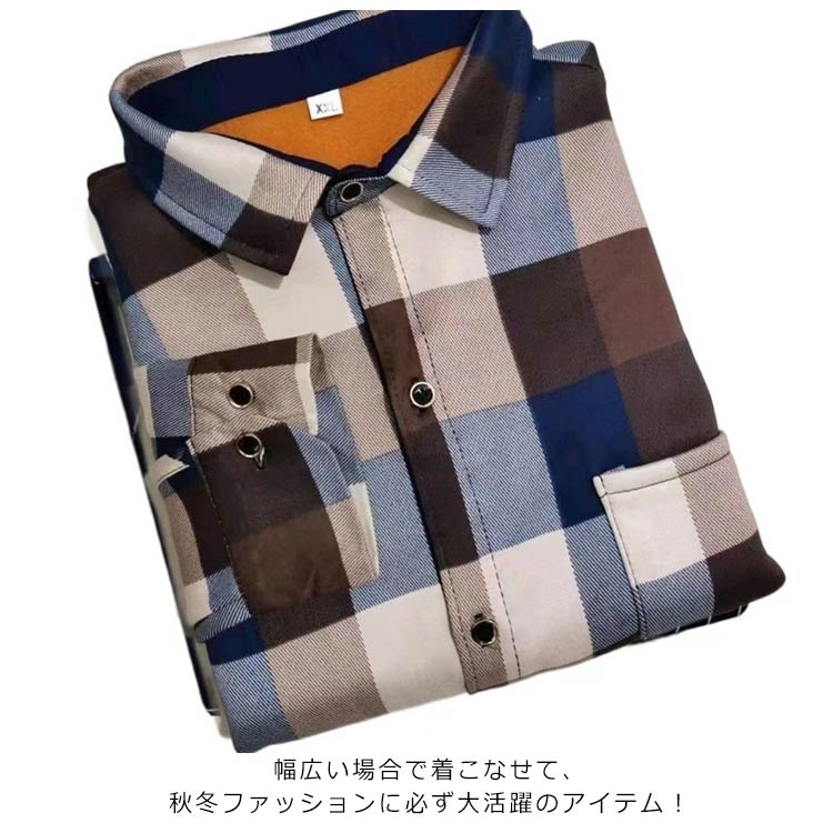 | L-4XL!メンズ用の長袖裏起毛シャツ。 モコモコとした裏ボア加工が施され、暖かくて優しい着心地をもたらす。 1枚着用で、セーター+シャツ+インナーウェアの3枚の役割が果たせる。厚手の複合生地なので、洗ってもシワが出にくくて縮まないのも嬉しい。 クラシカルなチェック柄デザインがレトロ感とカジュアルな雰囲気を演出してくれる。配色的にも落ち着きがあり、男性が気軽に着こなせる。 メインとしても、コートやジャケットなどと重ね着してもよろしい。 幅広い場合で着こなせて、秋冬ファッションに必ず大活躍のアイテム! | |