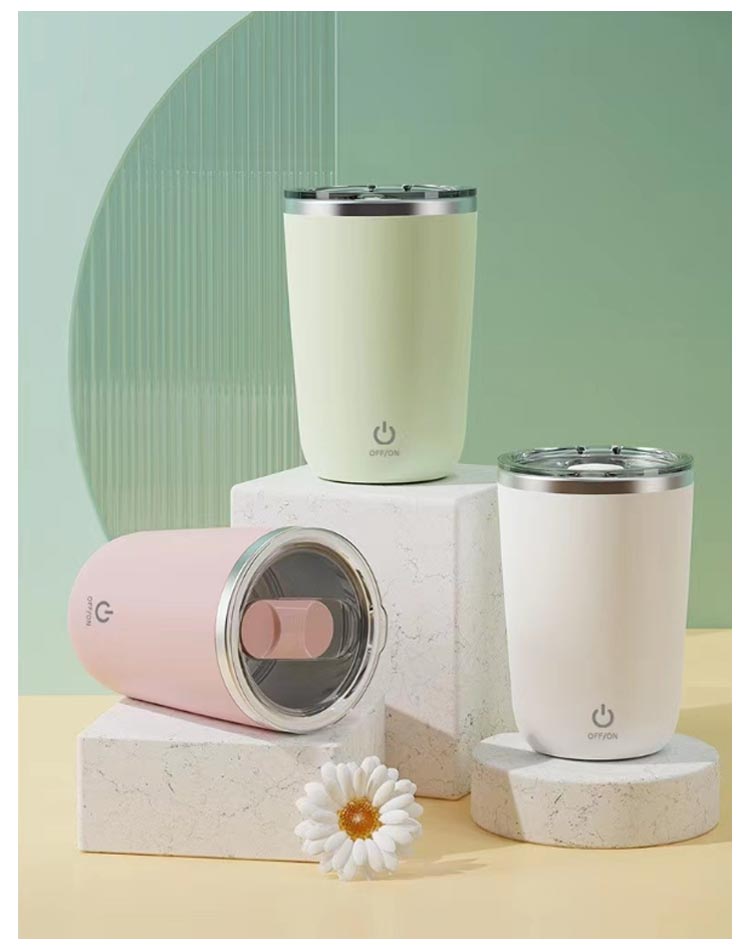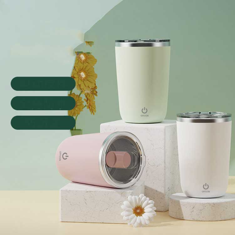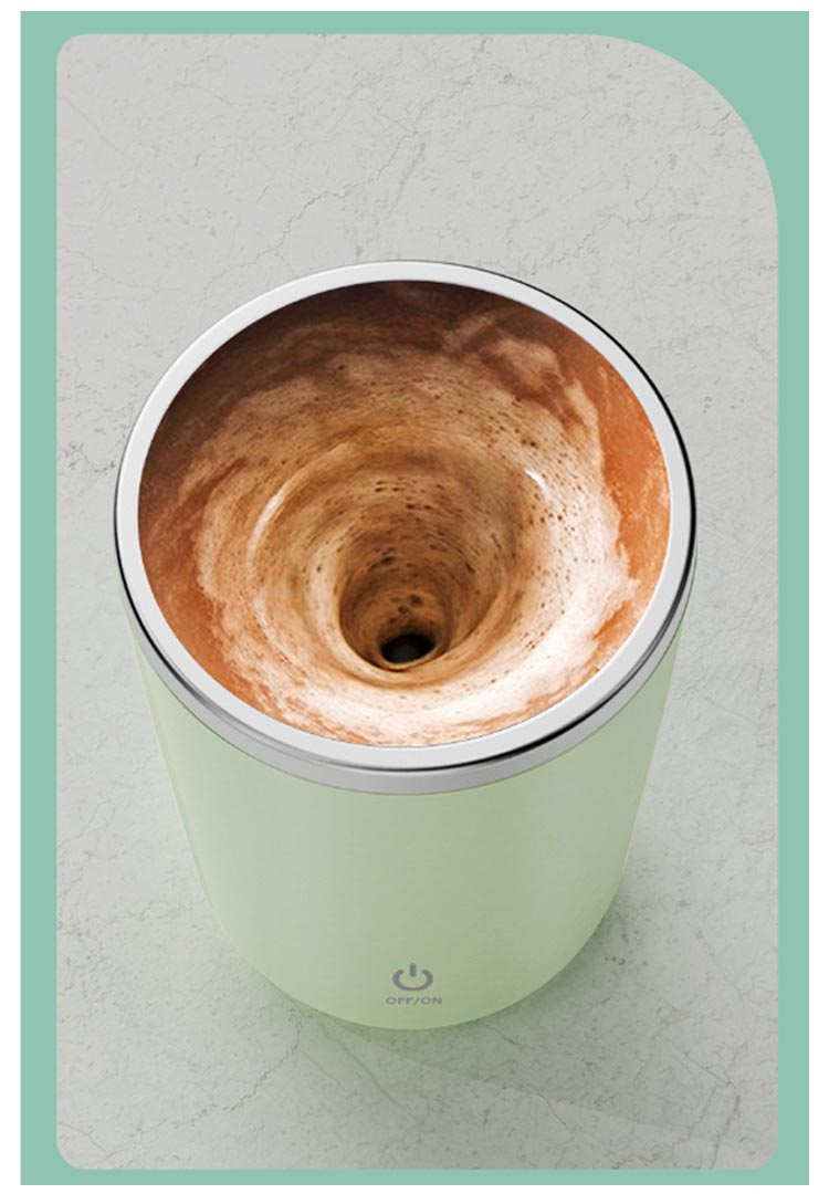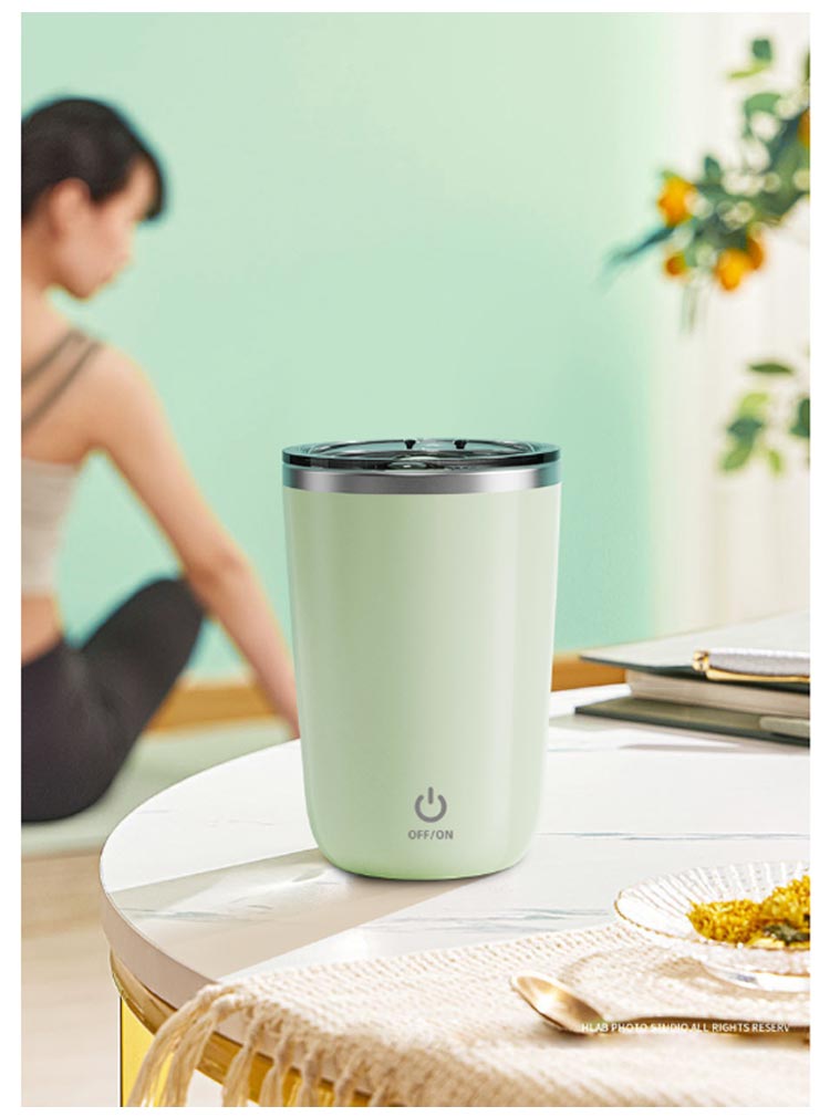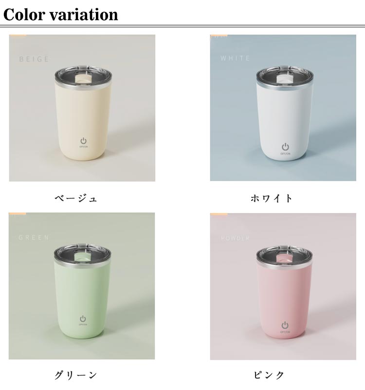 | 充電式自動攪拌マグカップ。自動で混ぜられるマグカップ。 ボタンを押すと、底の磁力で動くローターがマグ内の水をかくはんします。自動で混ぜられるスプーン要らずのマグです。 コーヒーや紅茶、粉ミルク、青汁など、様々なドリンクをかき混ぜ可能。 蓋付きで水が跳びはねる心配はありません。 USBケーブルで充電しておけば、電源を気にせず使用可能。 耐久性?耐錆性に優れたステンレスを採用。お手入れも簡単です。 | |