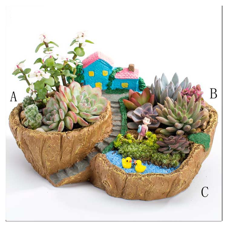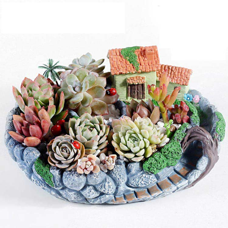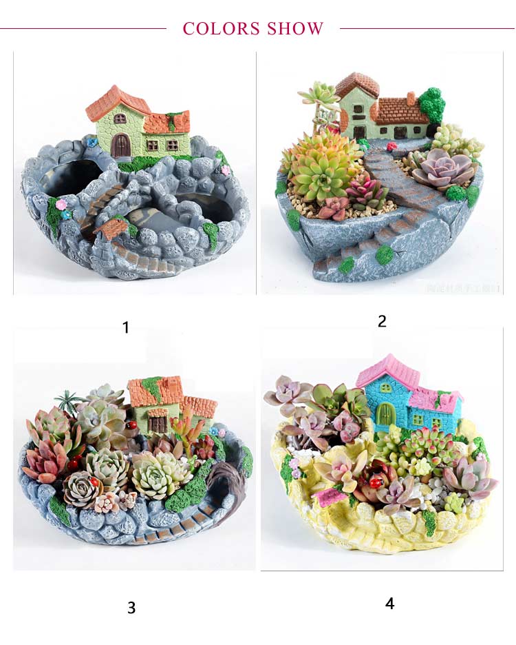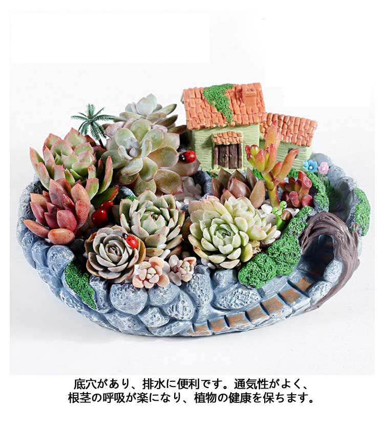 多肉植物 寄せ植え 植木鉢 鉢 お城 民家 ハウス 別荘 大サイズ 底穴付き 可愛い プランター ガーデン 室内 観葉植物 鉢植え 園芸用 DIY セダム エケベリア サボテン ハオルチア クラッスラ ハオルチア カランコエ フラワーポット 樹脂 【送料無料】