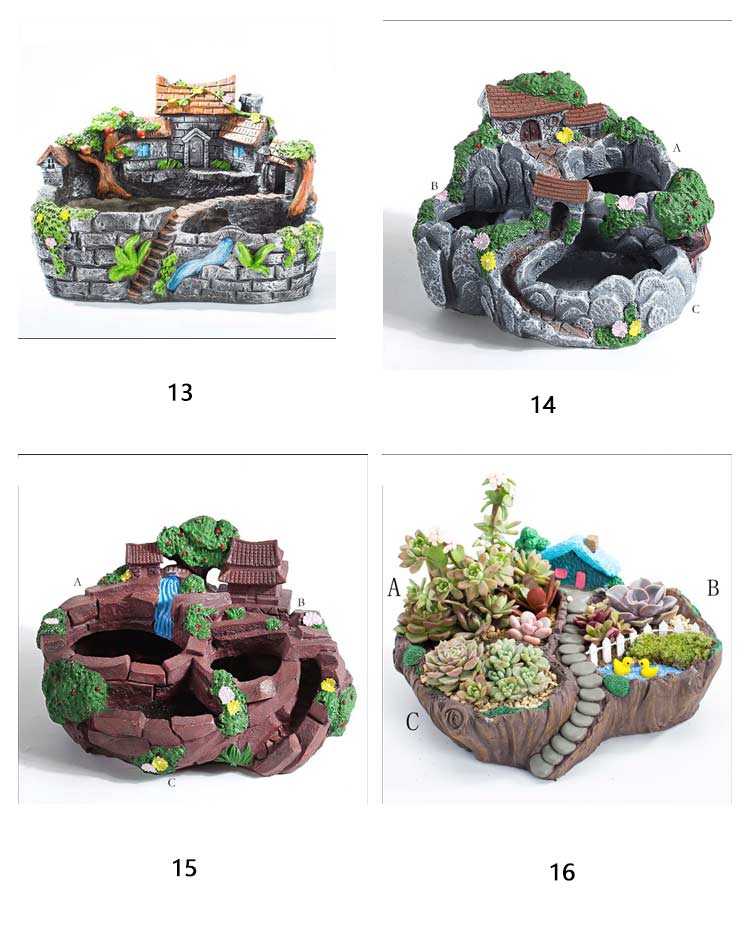 多肉植物に最適な樹脂製の鉢、お城の形が特徴。【全20タイプ】可愛いフォルムは、色とりどりのお花を植えたり多肉植物の寄せ植え等の際に華やかに演出します。底穴があり、排水に便利です。通気性がよく、根茎の呼吸が楽になり、植物の健康を保ちます。インテリアやガーデンアイテムとして様々な場所の装飾で大活躍です。また、ご自宅以外にオフィスやお店などのディスプレイにも◎可愛くて毎日見えるところに飾ると、癒しの空間を作り出します