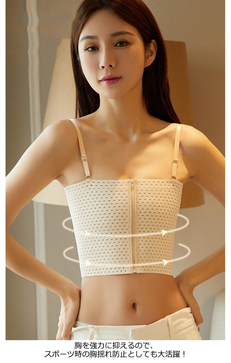 前チャックタイプなので、フック式より更に着脱が楽になります。着脱カンタン!前チャックタイプの胸つぶしシャツ・新登場!暑い夏場でも着こむ冬場でも通気性抜群で快適に着用頂けます♪胸を強力に抑えるので、スポーツ時の胸揺れ防止としても大活躍!