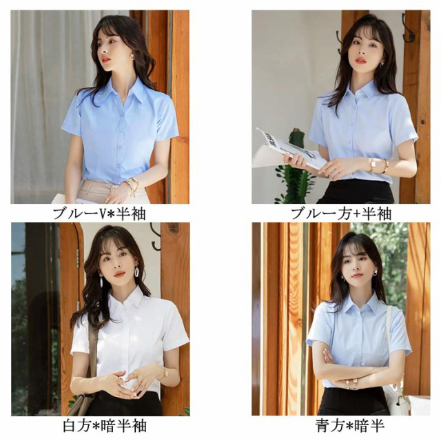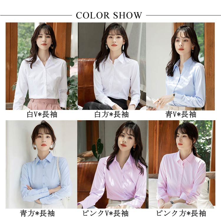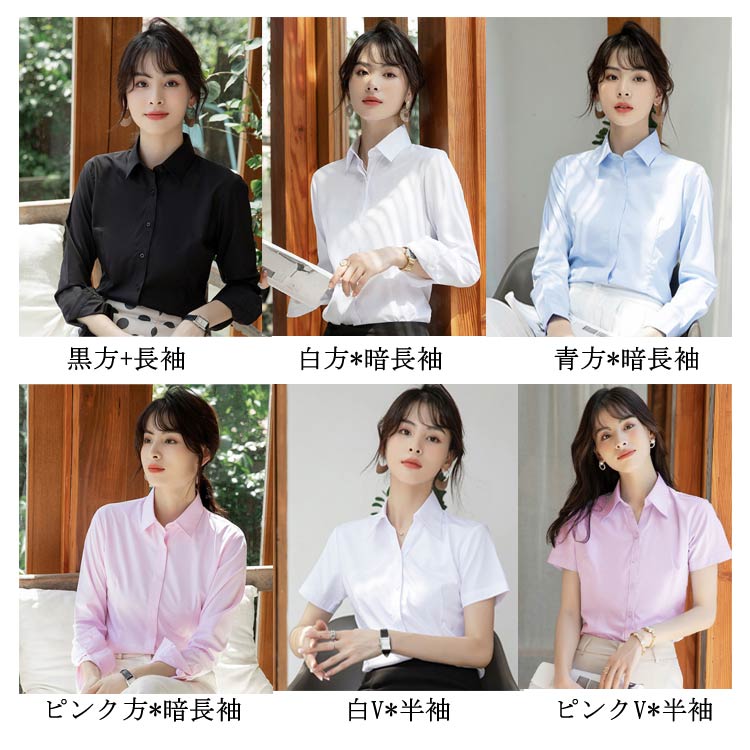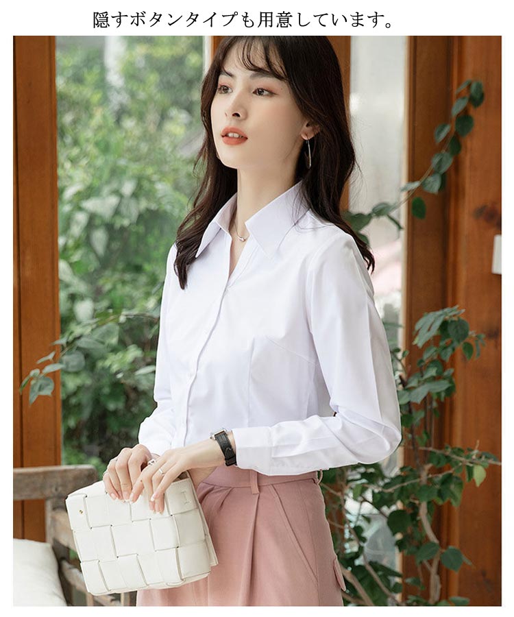レディース ワイシャツ 形態安定 シャツ ブラウス 長袖 半袖 スーツ インナー オフィス ビジネス 事務服 制服 リクルート おしゃれ 選べる襟 白 無地 ホワイト 開襟 Vネック 隠すボタン 大きいサイズ OL 春 夏 秋 冬 S-5XL