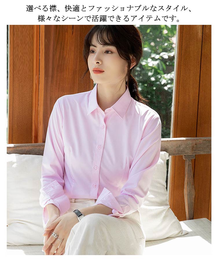 乾きやすくしわになりにくいのでお手入れも楽々、アイロン無しでも着られる形状安定シャツです。お仕事中もストレスフリーな着心地。タイプは通勤や就職活動に、入学式や七五三にお勧め。シンプルな無地カラーで、更に女性らしさをアピールボトムスとの組み合わせは自由、通勤コーデにも日常コーデにも似合う一枚。Sから5XLまで、8個サイズが用意されて、選択の幅が広いです。 隠すボタンタイプも用意しています。 選べる襟、快適とファッショナブルなスタイル、様々なシーンで活躍できるアイテムです。