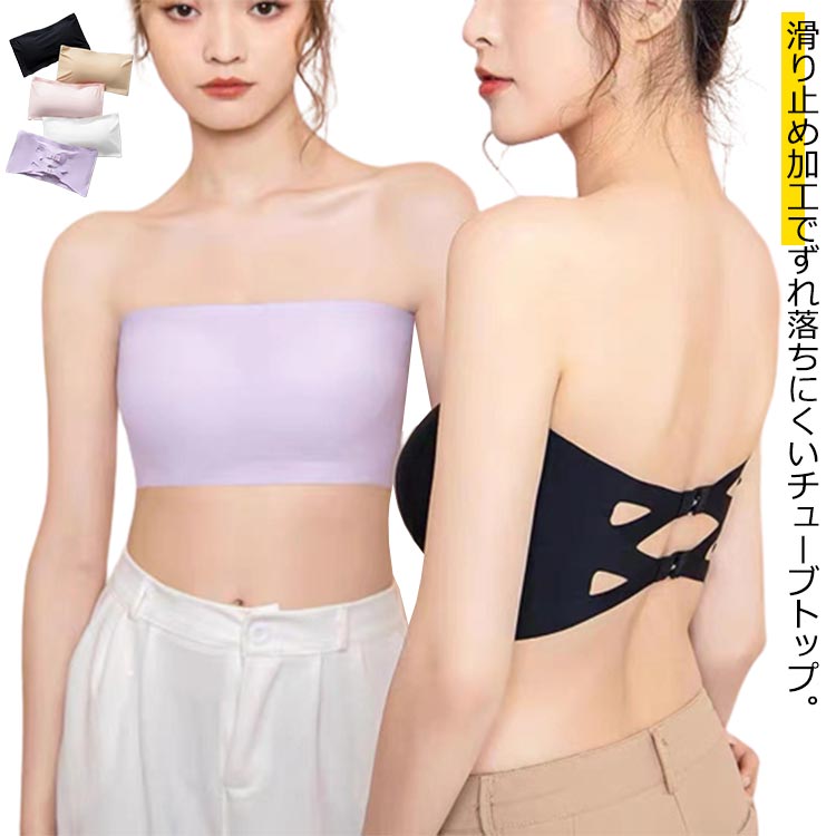 ずり落ちない チューブトップ ブラ ブラトップ カップ付 インナー ストラップレス 肩紐なし ダンス ブラジャー ベアトップ トップス ズレない ズレにくい ドレス ブラ レディース ずれない 白 黒 涼しい シームレス 送料無料