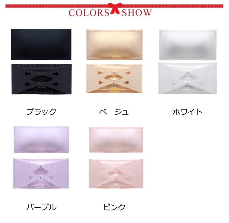 | 滑り止め加工でずれ落ちにくいチューブトップ。 肌触りよく、ストレッチ性があるので動きやすく、フィット感、ホールド感、履き心地ともに快適です。 通気性高いの涼しい生地のため、長時間着ても蒸れず、一日中快適! 日常使いにはもちろん、結婚式、パーティーなど幅広いシーンでも大活躍の肩ひもないブラです。 | |