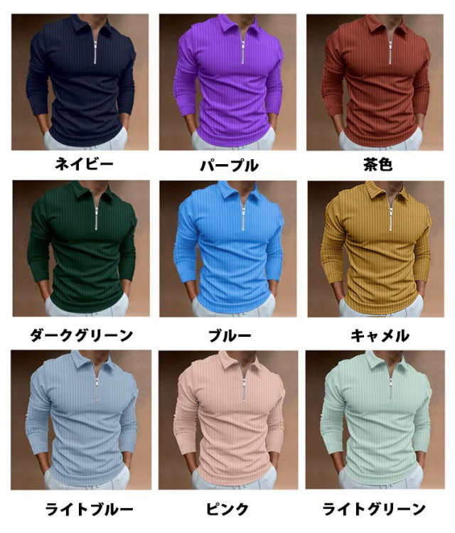 ゴルフウェア メンズ ポロシャツ ゴルフ 長袖 ハーフジップ トレーナー リブ カットソー Tシャ カジュアル ビジポロ トップス 襟付きトレーナー ジップシャツ スポーツ 作業着 部屋着 おしゃれ 無地 秋物 春物 ギフト 父の日