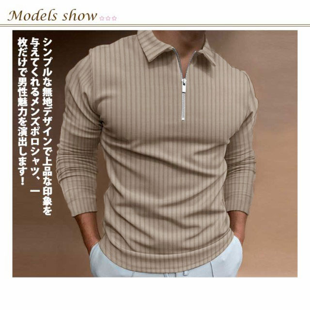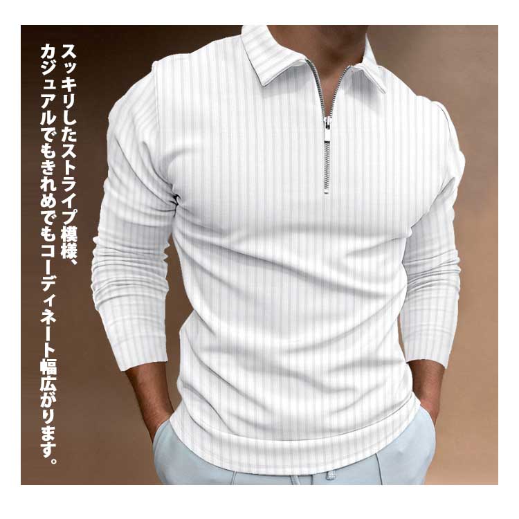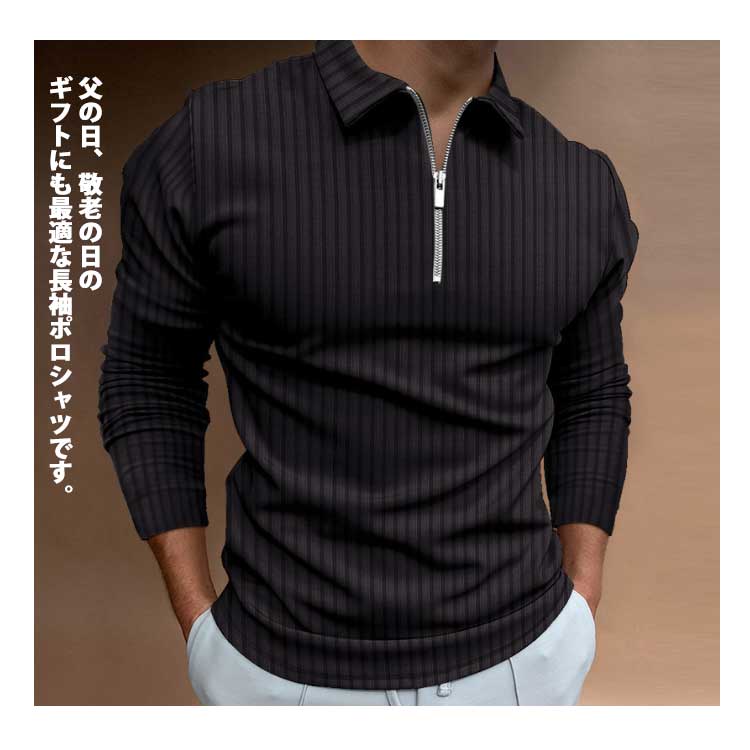 | 幅広いシーンで活躍してくれるハーフジップポロシャツ。 シンプルな無地デザインで上品な印象を与えてくれるメンズポロシャツ、一枚だけで男性魅力を演出します! スッキリしたストライプ模様、カジュアルでもきれめでもコーディネート幅広がります。 父の日、敬老の日のギフトにも最適な長袖ポロシャツです。 | |