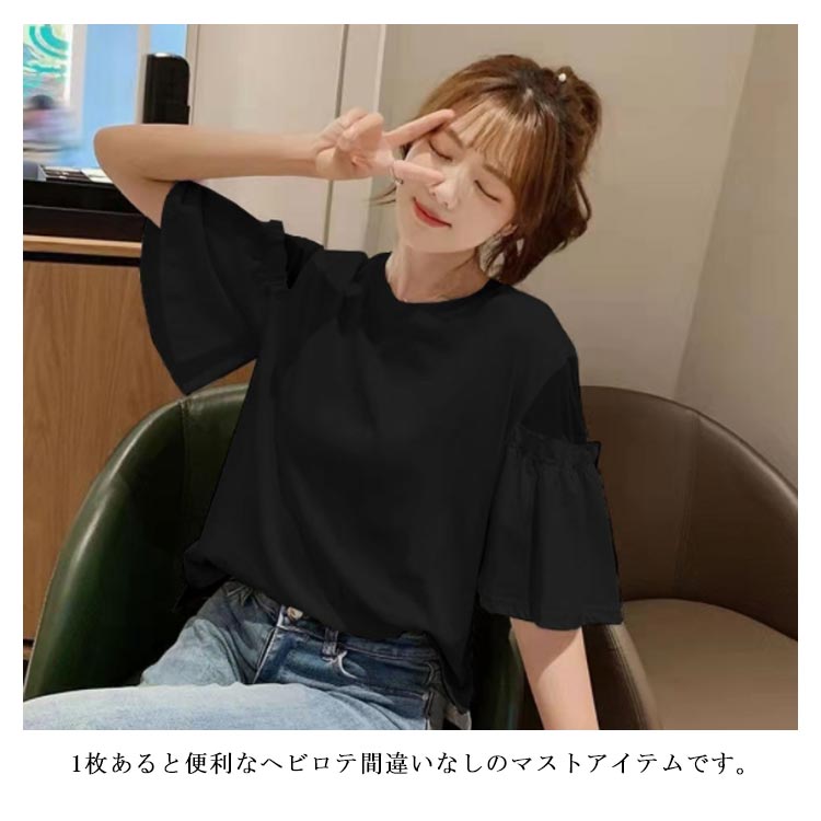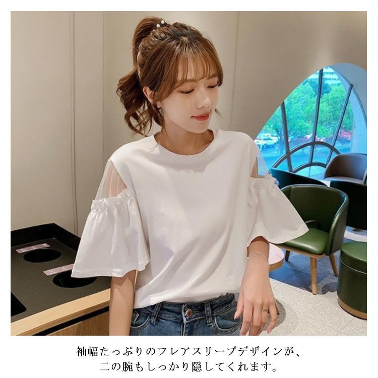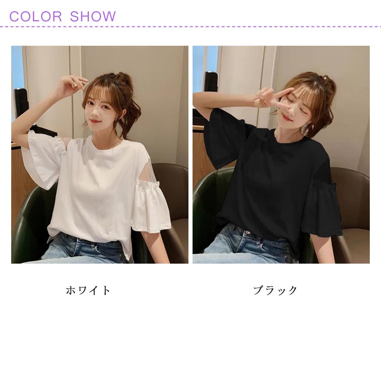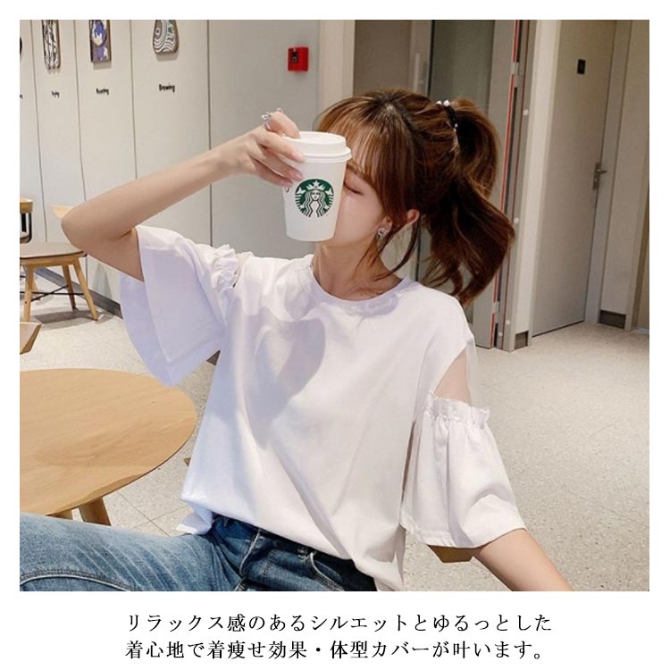 Tシャツ レディース オフショルダー 半袖 肩出し カットソー 夏物 トップス 無地 フレア袖 きれいめ 通勤 リゾート お洒落 ゆったり 大きいサイズ 可愛い シンプル 送料無料