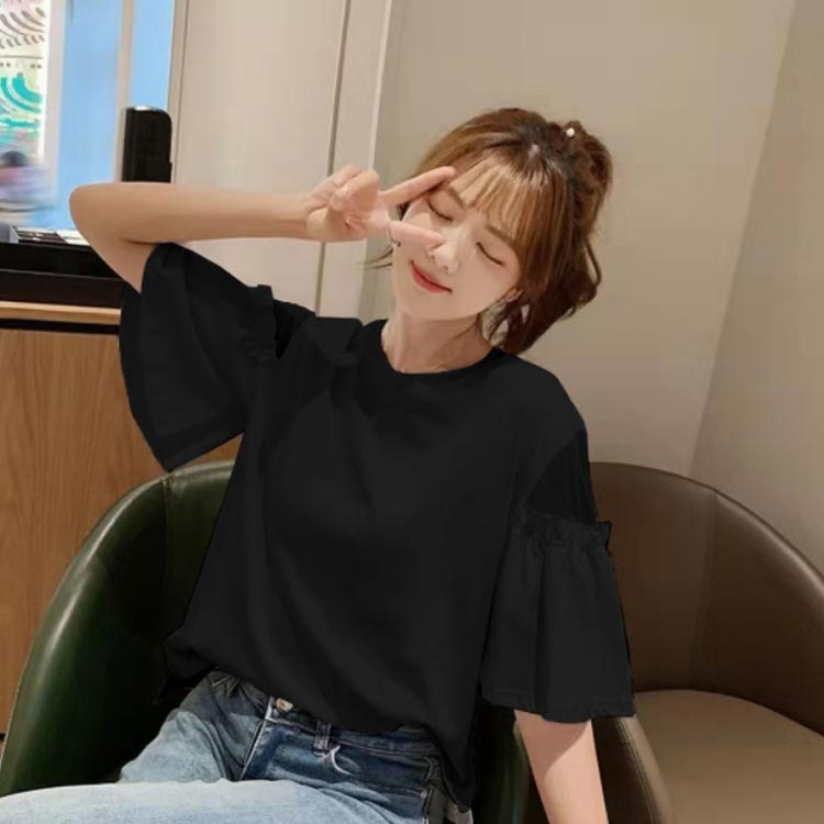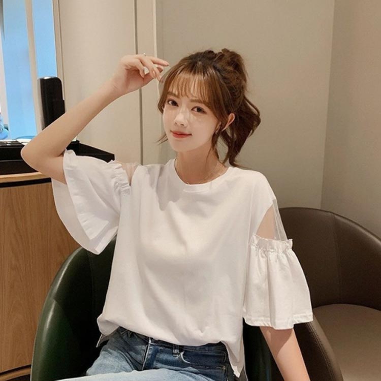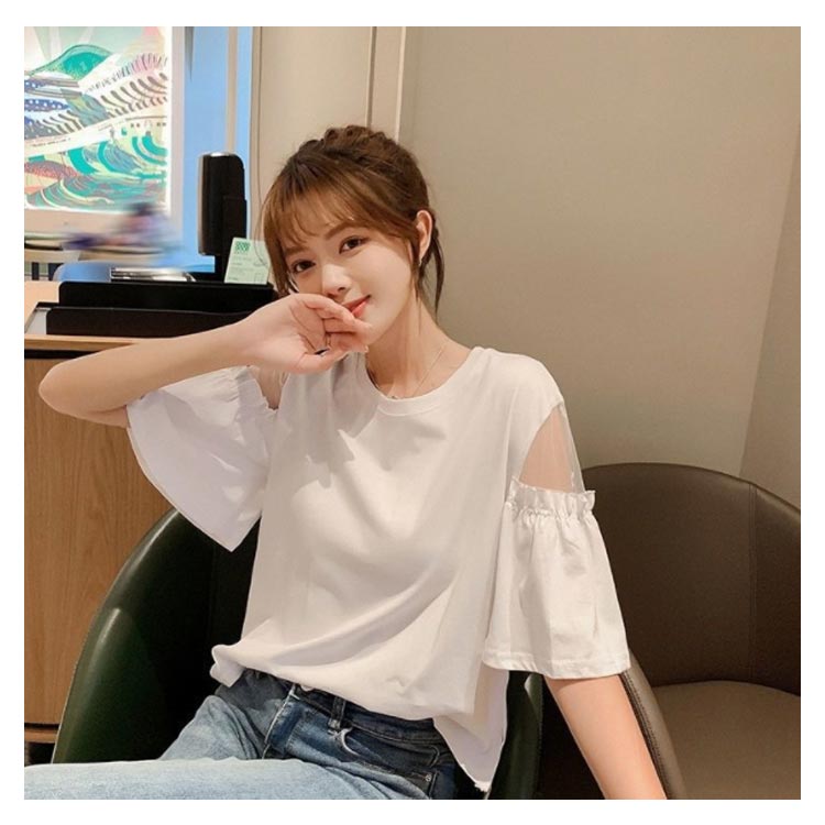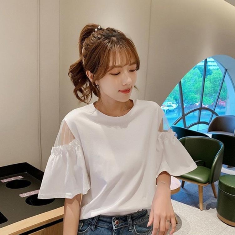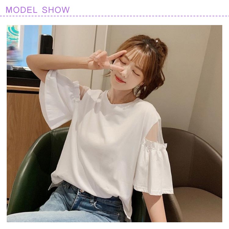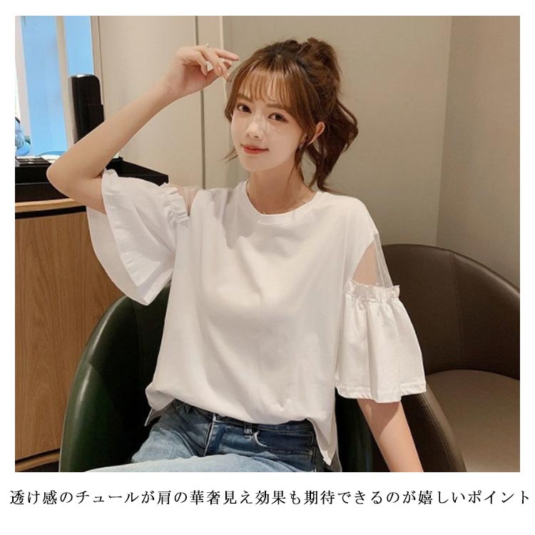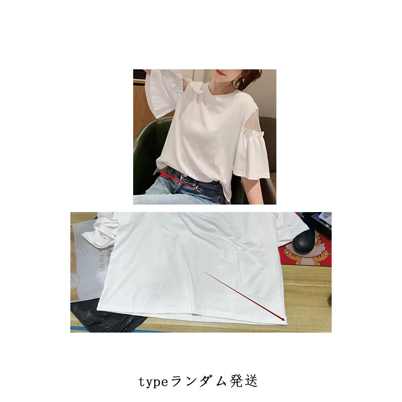さらっと軽やかに着こなせる!ふんわり感が可愛いカットソーです。透け感のチュールが肩の華奢見え効果も期待できるのが嬉しいポイント袖幅たっぷりのフレアスリーブデザインが、二の腕もしっかり隠してくれます。リラックス感のあるシルエットとゆるっとした着心地で着痩せ効果・体型カバーが叶います。1枚あると便利なヘビロテ間違いなしのマストアイテムです。