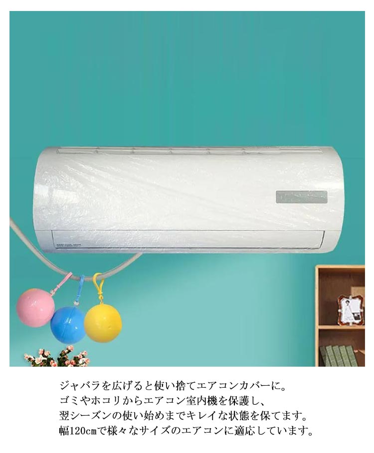 | 使い捨てエアコンカバー20枚セット!ゴミやホコリからエアコン室内機を守ります。 ジャバラを広げると使い捨てエアコンカバーに。ゴミやホコリからエアコン室内機を保護し、翌シーズンの使い始めまでキレイな状態を保てます。 幅120cmで様々なサイズのエアコンに適応しています。 エアコン以外に、家具や、電子レンジなどの汚れ防止にも◎ | |