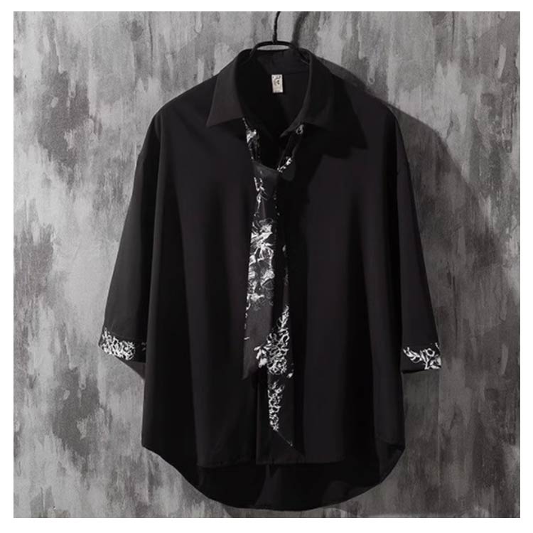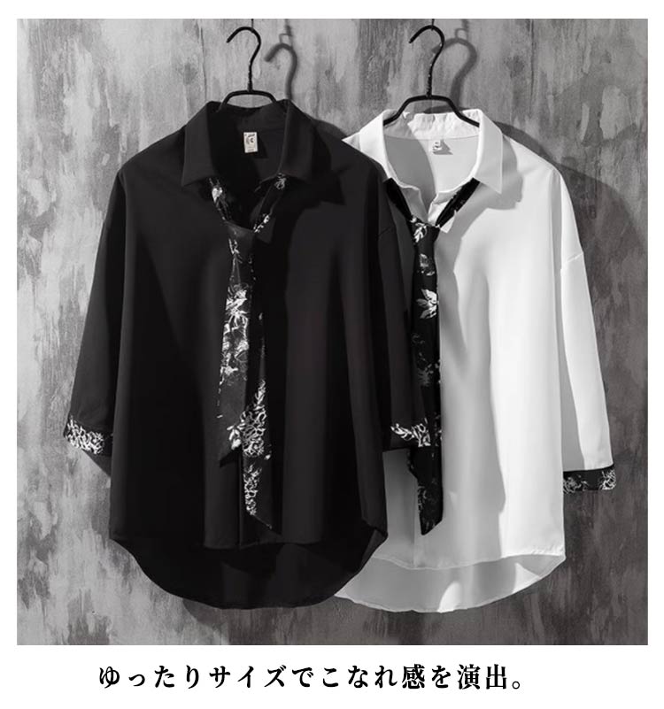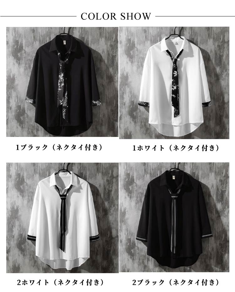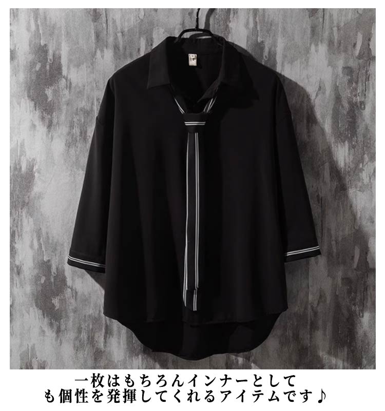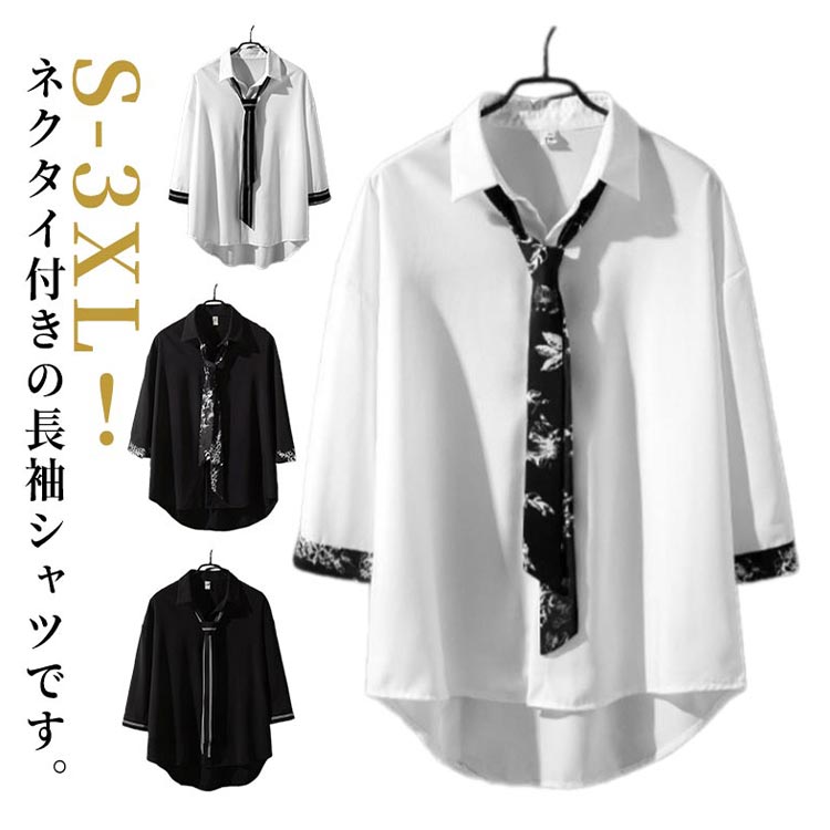 | S-3XL!ネクタイ付きの長袖シャツです。 ゆったりサイズでこなれ感を演出。 一枚はもちろんインナーとしても個性を発揮してくれるアイテムです? | |