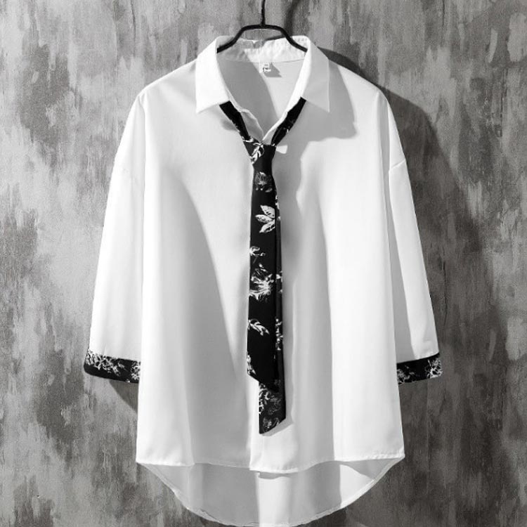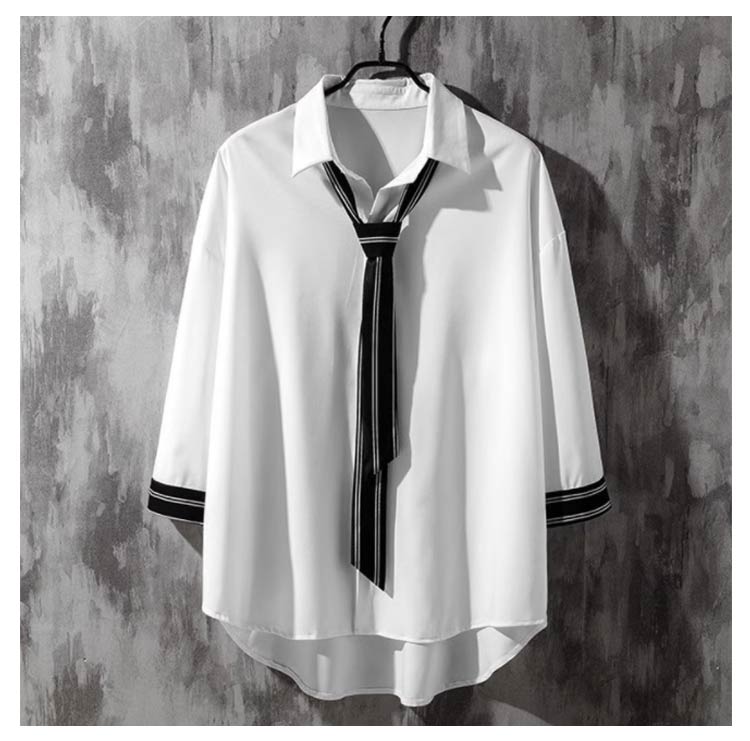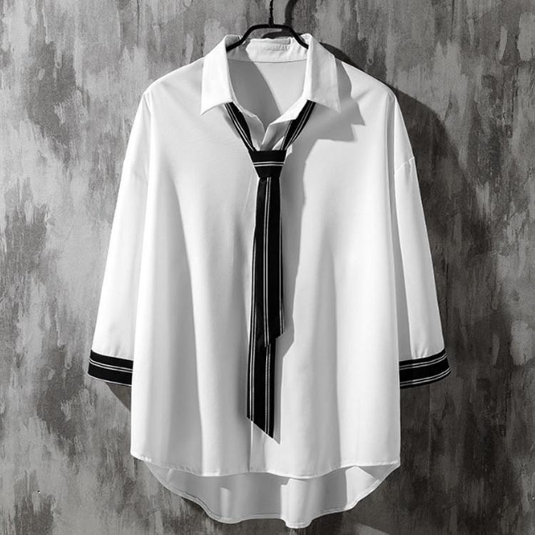 長袖シャツ メンズ ネクタイ付き シャツ レディース 白シャツ 学生服 制服 カジュアルシャツ ゆったり 大きいサイズ トップス 春物 夏 おしゃれ 男女兼用 ユニセックス 韓国ファッション スクールシャツ ブラック ホワイト 黒 白 秋服 送料無料