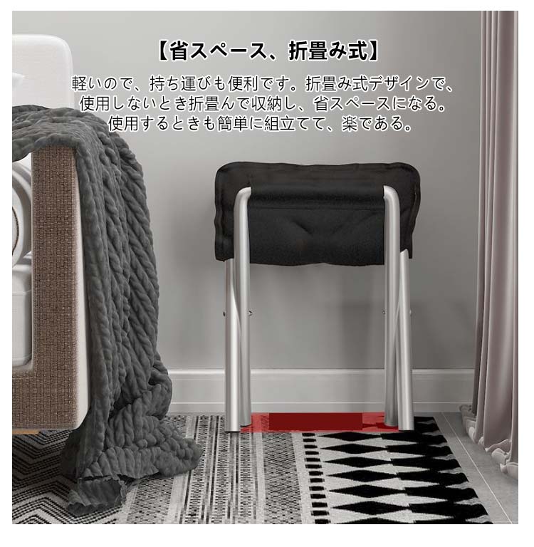 【省スペース、折畳み式】軽いので、持ち運びも便利です。折畳み式デザインで、使用しないとき折畳んで収納し、省スペースになる。使用するときも簡単に組立てて、楽である。 【多機能のデザイン】チェアやソファーと一緒に使用して脚をゆったり伸ばすことができる、オットマンです。のびのびと足を伸ばすことができ、より深いリラックス感を得られます。 【環境に優しい素材】クッション素材には優しい触感の素材使用しています。固定脚仕様なので、しっかり安定して使用できます。足置きだけではなく、来客時や家庭教師用の補助的な椅子としても使用できます。 【多用途】ミニスツールは、座って靴を替えるのに役立ちます。 廊下、リビングルーム、部屋、寝室、バスルーム、玄関、庭園などに適しています。