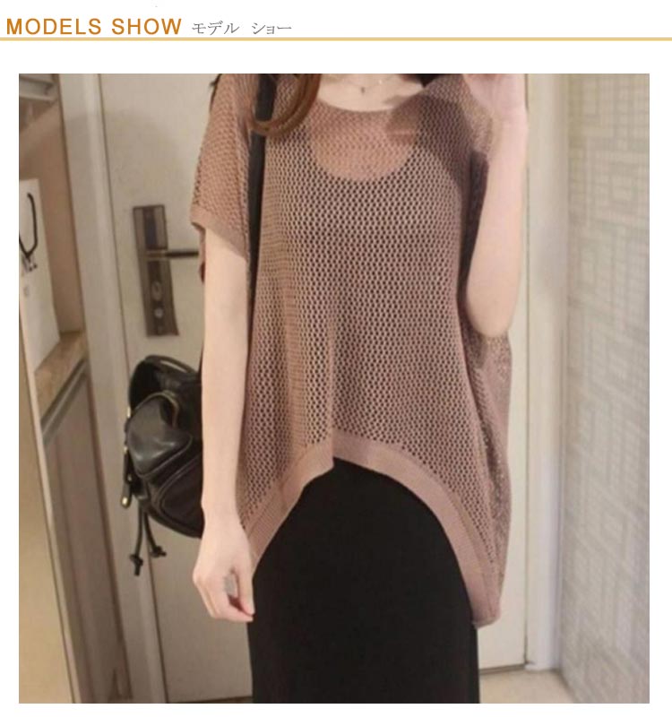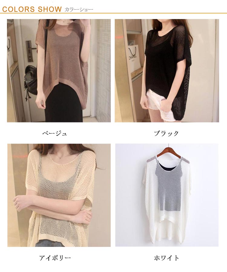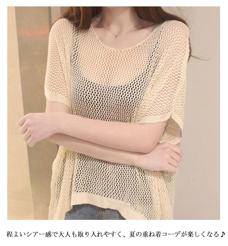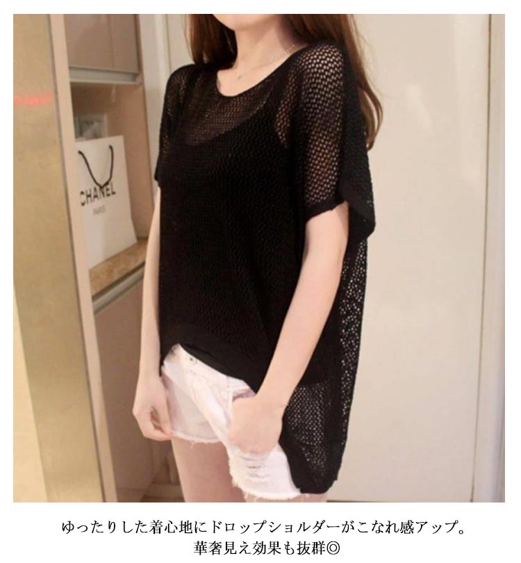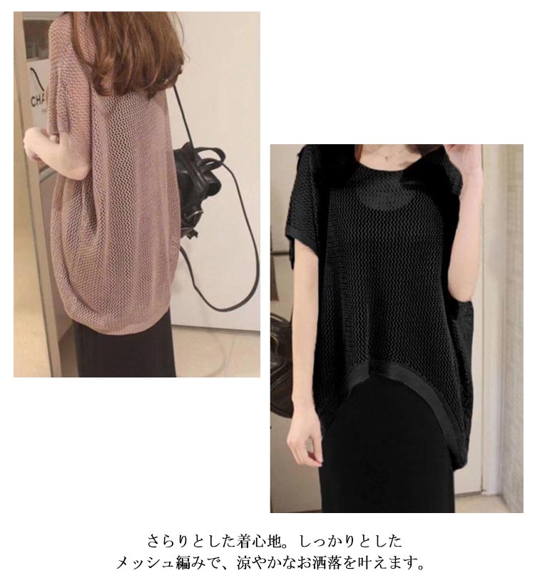 M-3XL!程よいシアーの透け感が夏も涼し気なサマーニット。さらりとした着心地。しっかりとしたメッシュ編みで、涼やかなお洒落を叶えます。ゆったりした着心地にドロップショルダーがこなれ感アップ。華奢見え効果も抜群◎程よいシアー感で大人も取り入れやすく、夏の重ね着コーデが楽しくなる♪