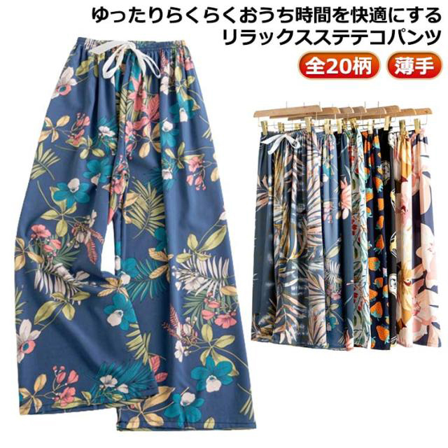 全20柄 ステテコ ルームパンツ ステテコパンツ リラックスパンツ 夏 リラテコ レディース ルームウェア パンツ 柄 総柄 9分丈 ゆったり 薄手 ボトムス 部屋着 おしゃれ かわいい 花柄 婦人 サラサラ パジャマ 綿 コットン 送料無料