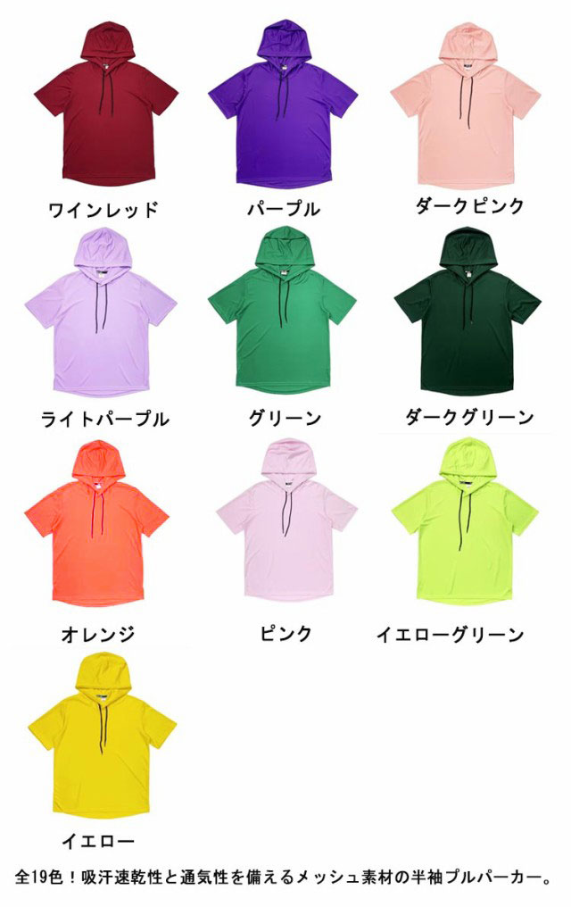 | 全19色!吸汗速乾性と通気性を備えるメッシュ素材の半袖プルパーカー。 軽くて通気性がよくムレにくいので、汗ばむ季節も快適。 なシルエットなので、どんなボトムとも相性抜群です。 S~5XLまで幅広くサイズ展開をしております。 | |