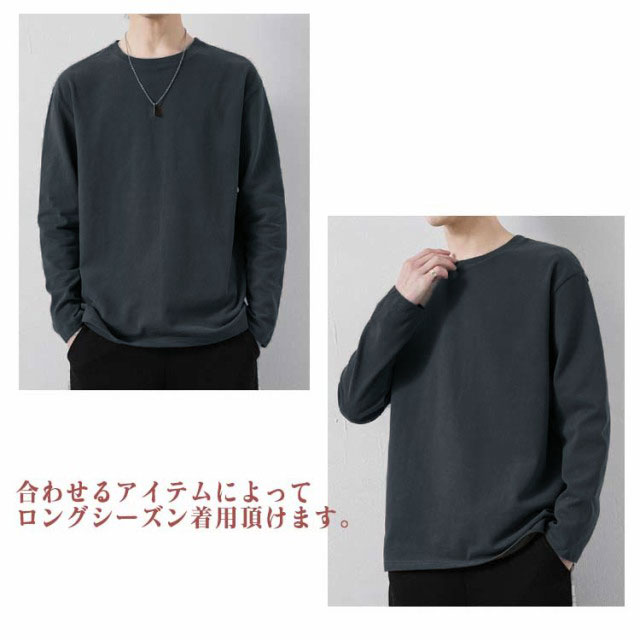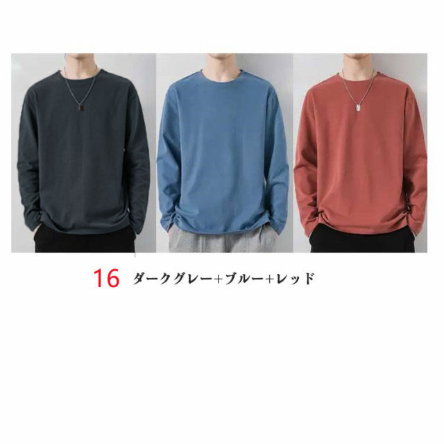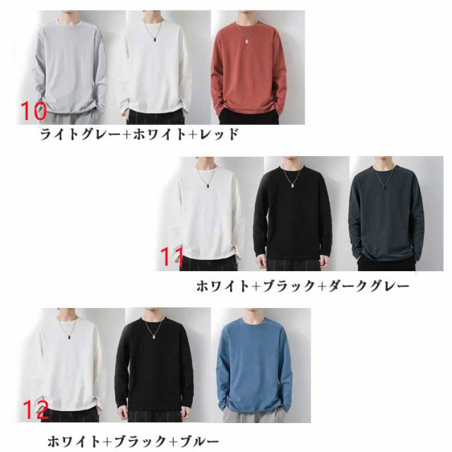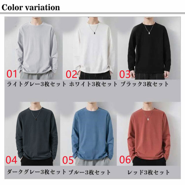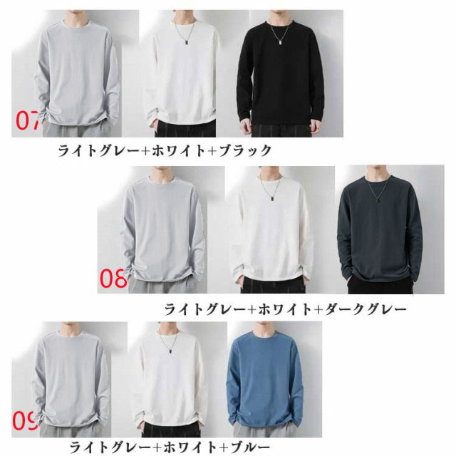 【3枚セット】 Tシャツ メンズ 長袖 tシャツ ロンT クルーネック トップス 春 秋 無地 シンプル ゆったり ロングtシャツ 重ね着 秋 秋服 秋物 秋冬 送料無料