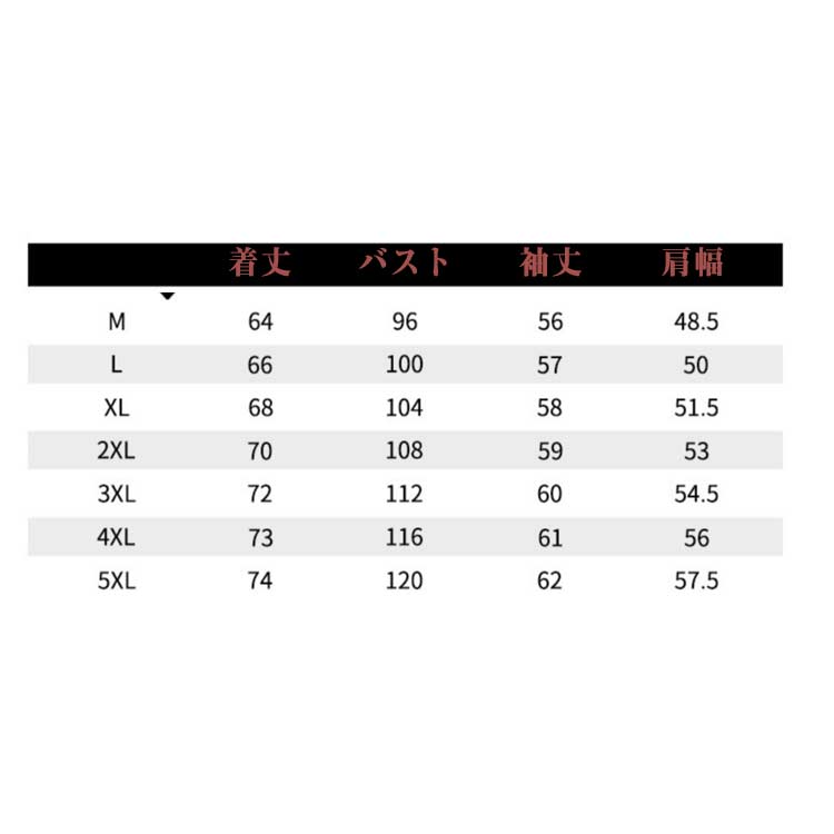| サイズ | M L XL 2XL 3XL 4XL 5XL |
