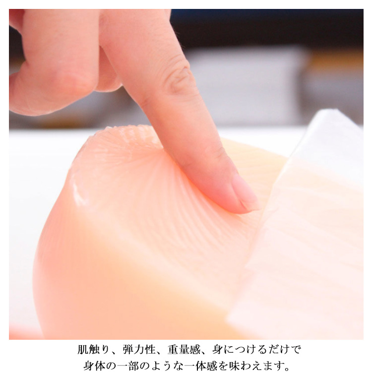 右×1 左×1の左右セットです。丸い綺麗なおっぱいを再現でき、横からのシルエットも綺麗です。人体に近づけた自然な肌色、人間工学に基づいてデザインされた水滴型形状です。肌触り、弾力性、重量感、身につけるだけで身体の一部のような一体感を味わえます。女装キャラ、コスプレに、女性の方のバストアップにオススメ。