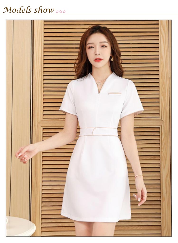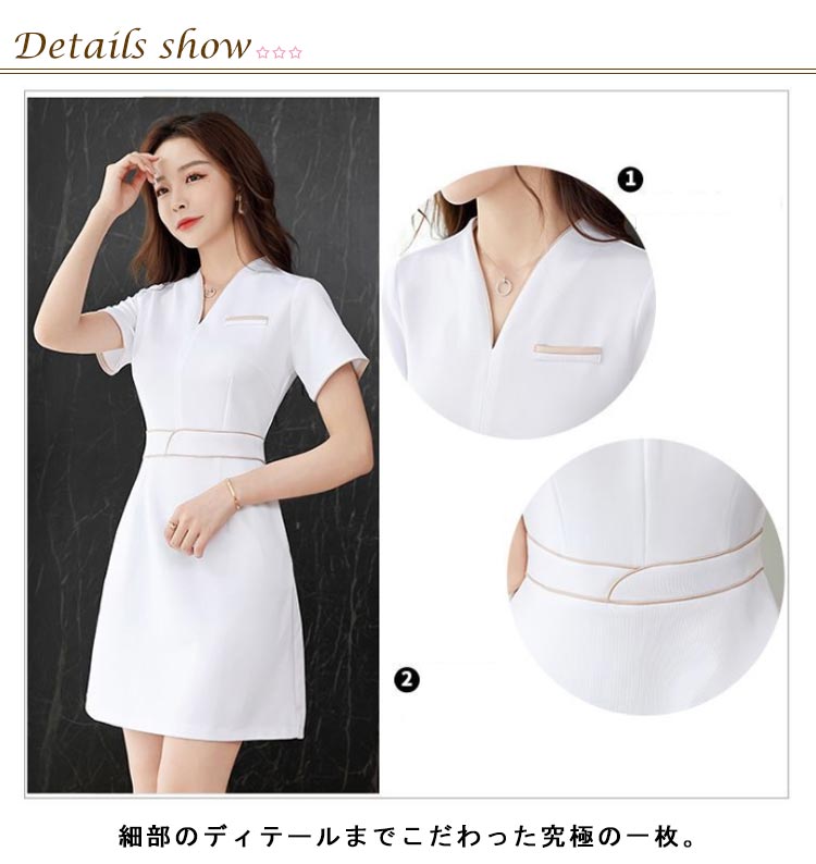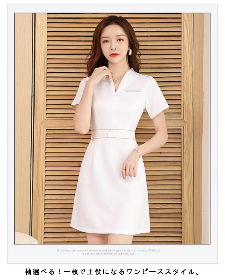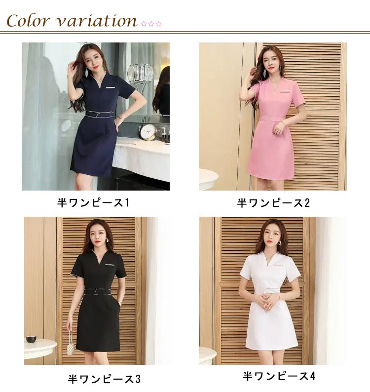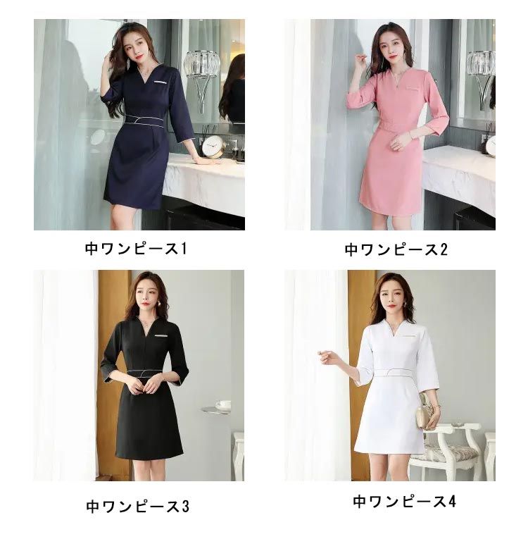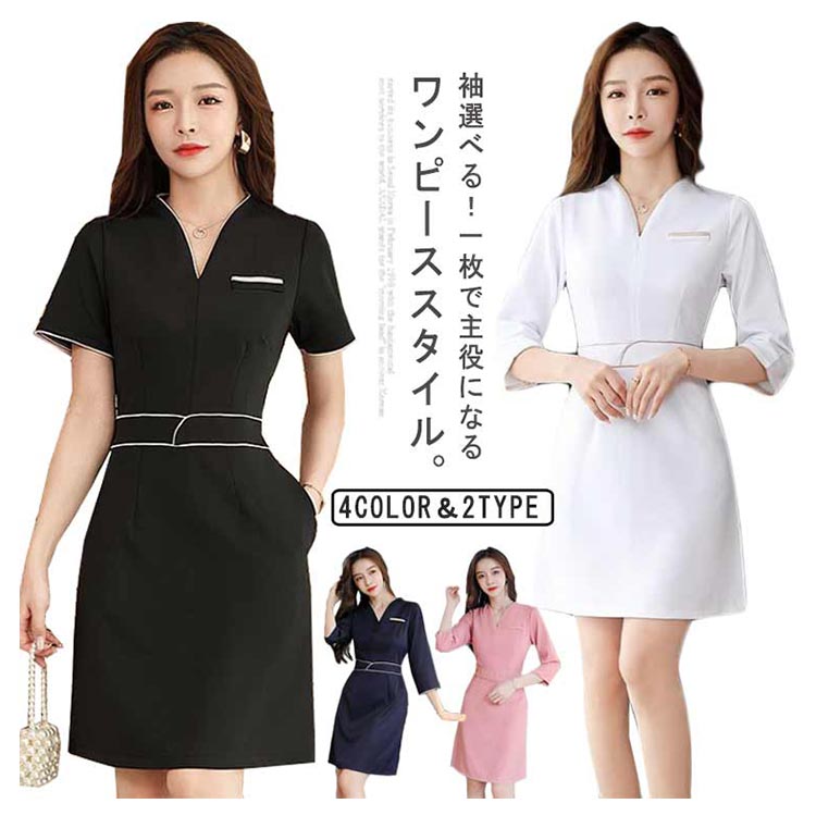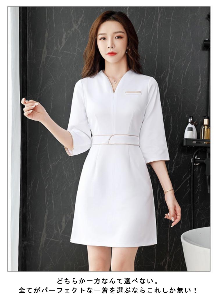 エステ ワンピース ユニフォーム 白 エステ 制服 サービス 美容師 ホワイト 受付 エステサロン ヘッドスパ サロン 女性用 半袖 七分袖 作業着 歯科 美容 クリニック 作業服 エステワンピース おしゃれ ブラック ネイビー ピンク S M L XL 2XL 3XL 4XL