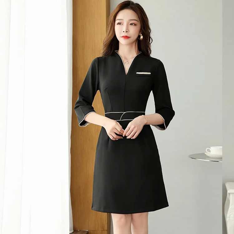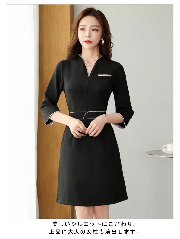 袖選べる!一枚で主役になるワンピーススタイル。お客様をお迎えするスタッフをエレガントに演出するユニフォーム。快適さもおしゃれ見えも!どちらか一方なんて選べない。全てがパーフェクトな一着を選ぶならこれしか無い!細部のディテールまでこだわった究極の一枚。ストレスなく動ける、着心地ソフトなストレッチ素材。美しいシルエットにこだわり、上品に大人の女性も演出します。