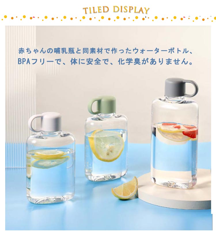 赤ちゃんの哺乳瓶と同素材で作ったウォーターボトル、BPAフリーで、体に安全で、化学臭がありません。薄型なデザイン、かさばらず、ミニバッグやポケットにも入れやすく、省スペースに持ち運びできます。漏れる心配がなく、横置きも縦置きもできます。オフィス、ジム、サイクリング、旅行、登山、その他の屋内または屋外のアクティビティで使用するのに理想的です。