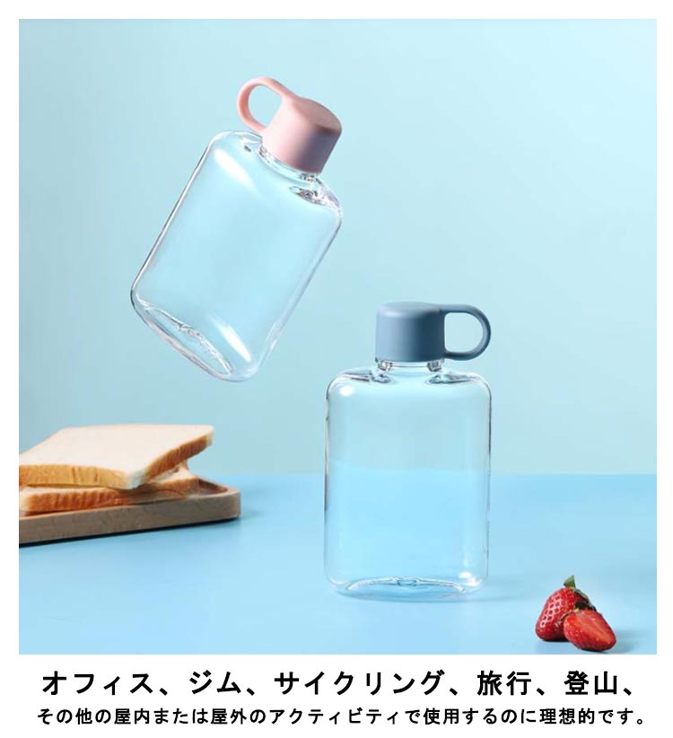 超薄型 ウォーターボトル 水筒 BPAフリー スリム 男女兼用 持ち運び便利 フラット ウォーターボトル スクエアボトル 漏れ防止 水分補給 ポケットに入れる 角型 透明 大容量 360ml 500ml 耐冷耐熱 ボトル 直飲み 横置き 縦置き 運動水筒 登山 キャンプ 携帯 水筒