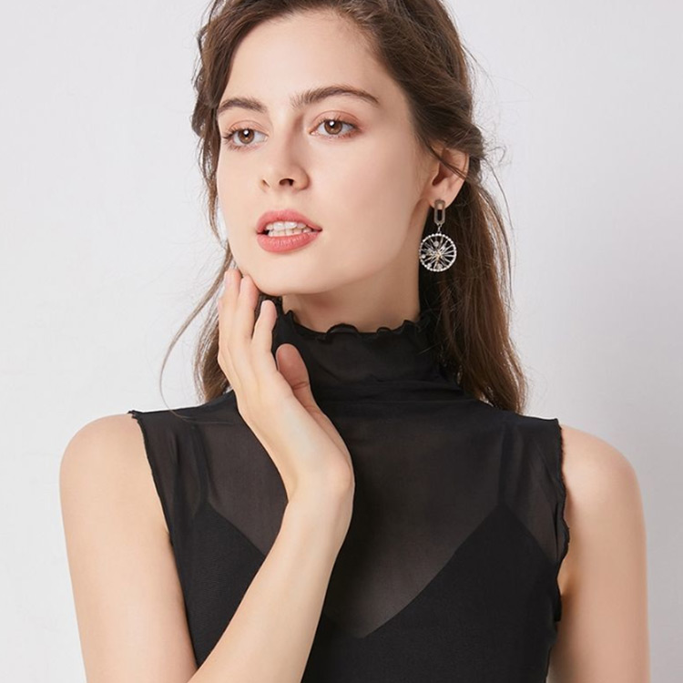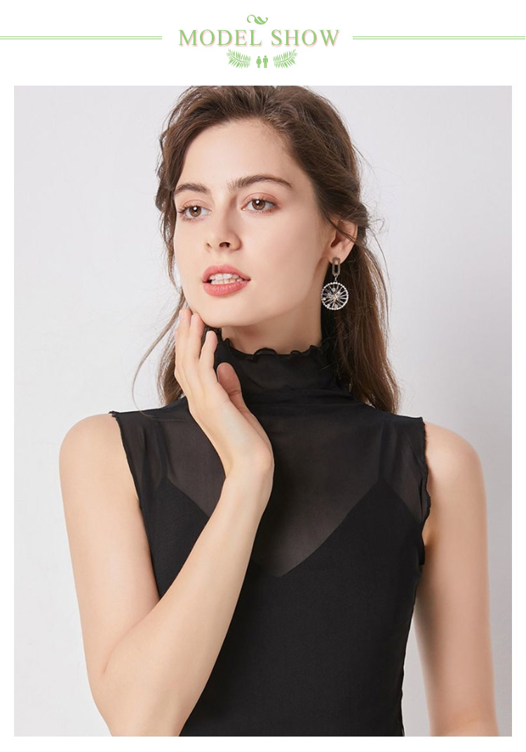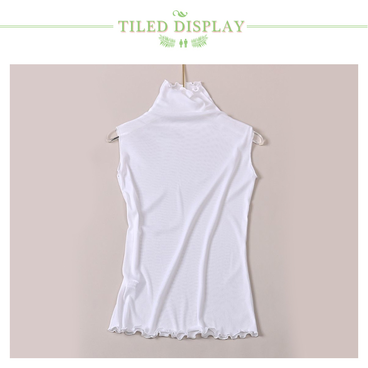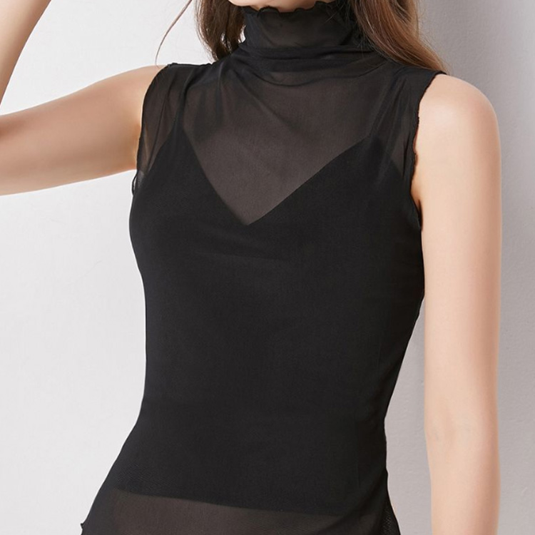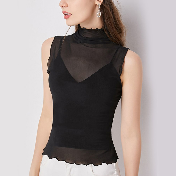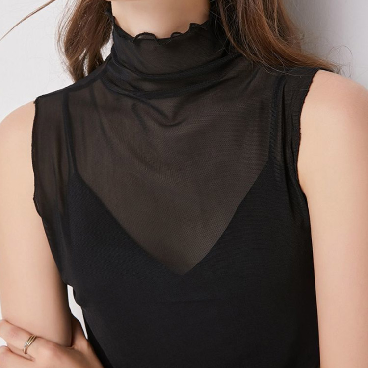 シースルー シアー トップス タンクトップ ハイネック ノースリーブ インナー 薄手 Tシャツ レディース 長袖 春夏 秋 おしゃれ 透け 重ね着 レイヤード コーデ 黒 無地 メッシュ風 ママ 普段着 デイリー OL 通勤 オフィス フリルネック 送料無料