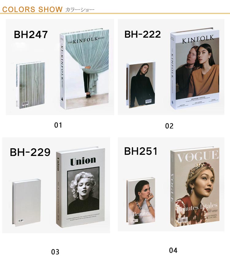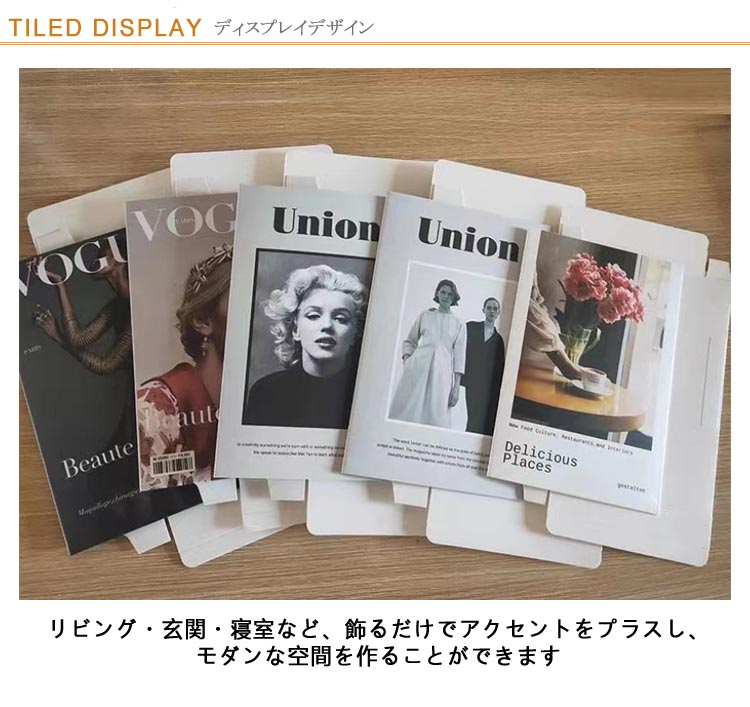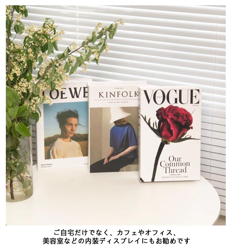 | 撮影用の小道具や、インテリアとして飾って頂くことができるオシャレなフェイクブックです リビング?玄関?寝室など、飾るだけでアクセントをプラスし、モダンな空間を作ることができます ご自宅だけでなく、カフェやオフィス、美容室などの内装ディスプレイにもお勧めです | |