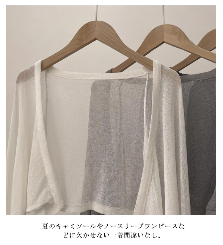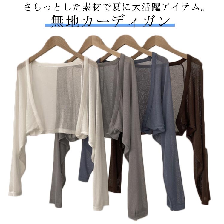 サマーカーディガン ボレロ カーディガン 送料無料 ロングスリーブ 長袖 無地カーディガン ショート丈 薄手 シンプル 無地 夏 秋 春 レディース 羽織り 白 黒