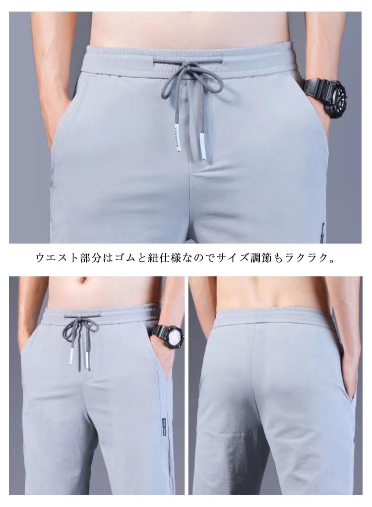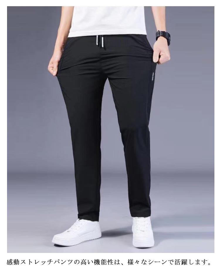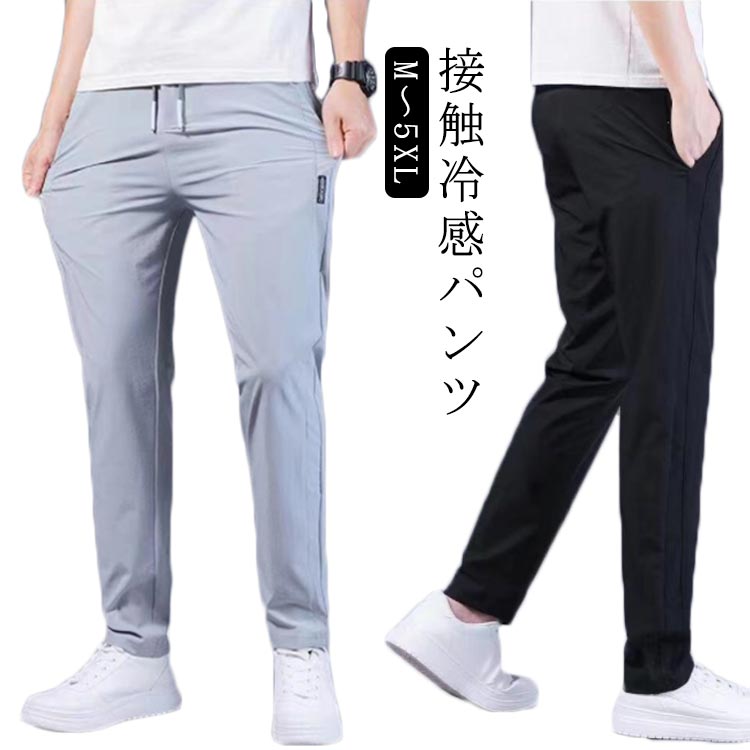 冷感パンツ メンズ アイスシルク 接触冷感 ひんやり 涼しい ロングパンツ ストレッチ イージーパンツ 薄手 ゴルフパンツ 伸縮 美脚 長ズボン 通気 速乾 スポーツ カジュアル 無地 おしゃれ 大きいサイズ 調整紐 夏 春 秋 クール感 送料無料 M-5XL
