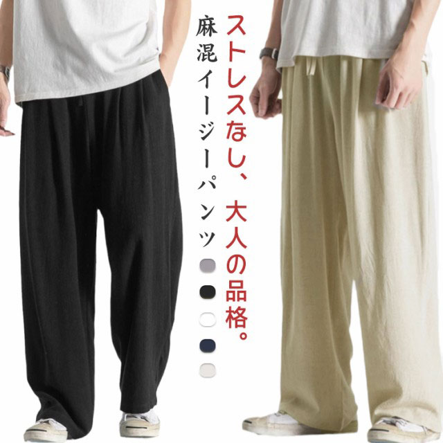 麻 パンツ メンズ イージーパンツ リネンパンツ ワイドパンツ 涼しい 綿麻 カジュアルパンツ ロングパンツ 麻パンツ ボトムス 男性用ズボン 春服 夏物
