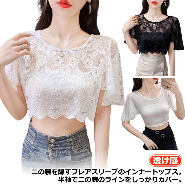 付け袖 重ね着 つけ袖 二の腕カバー 夏 インナー 半袖 フレア フリル袖 ひらひら レース 付け袖 トップス フリル レイヤード 体型カバー 着痩せ 透け感 細見え 振り袖 フレアスリーブ 上品 ホワイト ブラック パーティドレス 春 夏 秋