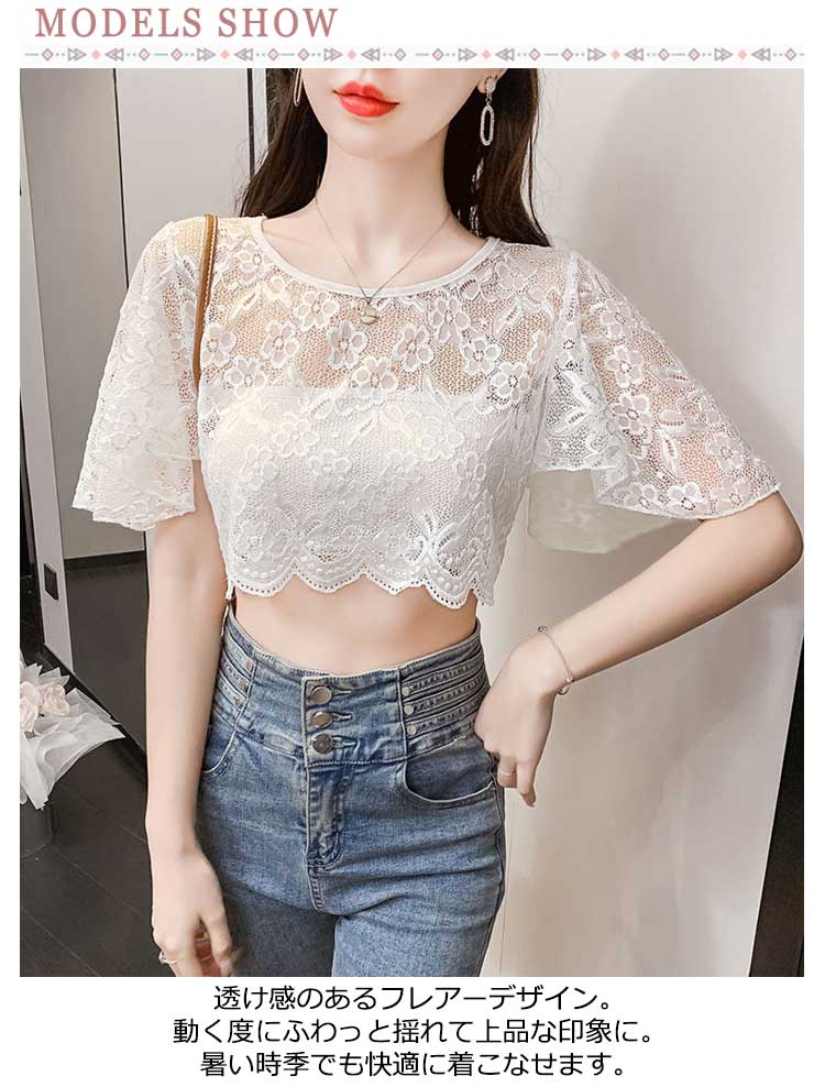 二の腕を隠すフレアスリーブのインナートップス。半袖で二の腕のラインをしっかりカバー。透け感のあるフレアーデザイン。動く度にふわっと揺れて上品な印象に。暑い時季でも快適に着こなせます。伸縮性のある柔らか素材で素肌にも優しい柔らかでしなやかな素材を使用。ノースリーブ服やワンピースとレイヤードするのはもちろん、オールインワンやジャンパースカートのインナーとしても重ね着するのも素敵。