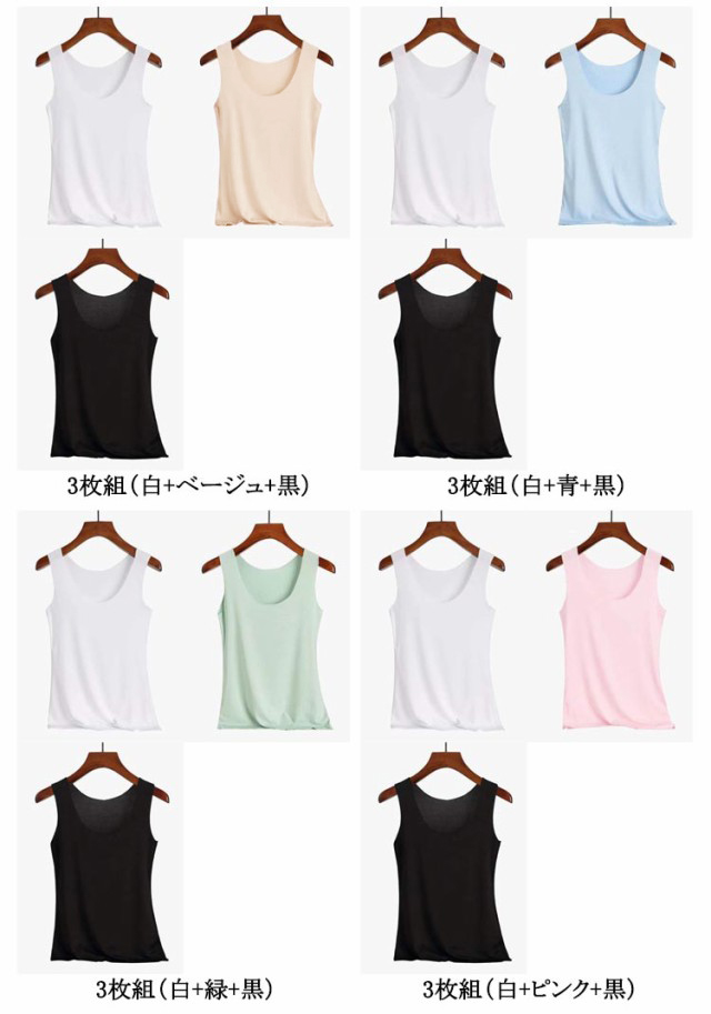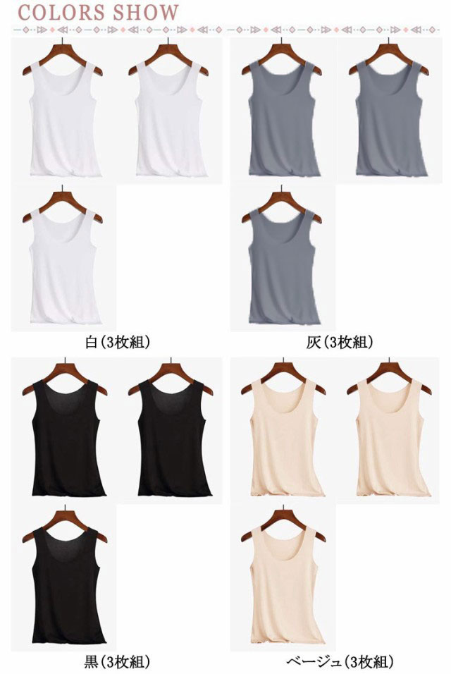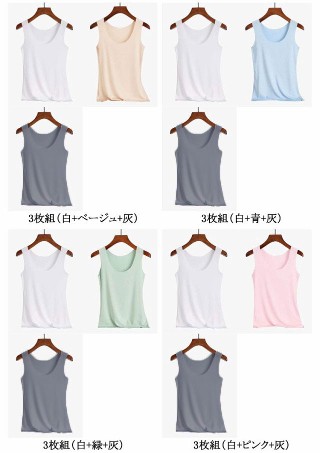 3枚組!タンクトップ 接触冷感 吸水速乾 インナー レディース 涼感 冷感 ひんやり 下着 肌着 ブラ紐 見えない キャミソール レイヤード 大きいサイズ Uネック 灰 グレー ホワイト 白 黒 ブラック ピンク 肌色 送料無料