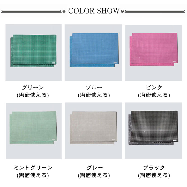 | 色 | グリーン(両面使える) ブルー(両面使える) ピンク(両面使える) ミントグリーン(両面使える) グレー(両面使える) ブラック(両面使える) |