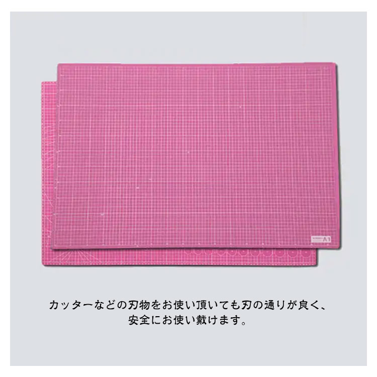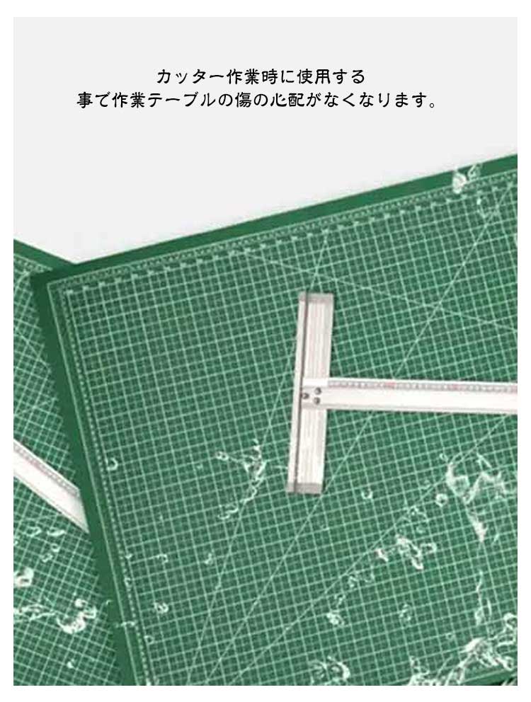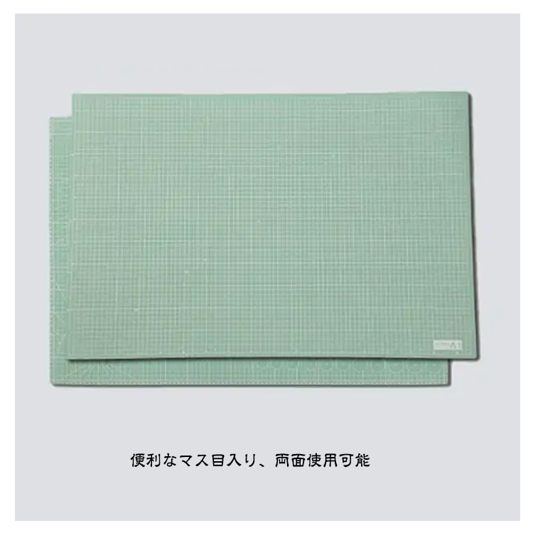 【両面使える】【カッターマット】【60×90cm】作業しやすい、大判サイズのカッターマット。サイズは60×90cmの大判サイズで厚みはどっしりとした3mm厚。カッター作業時に使用する事で作業テーブルの傷の心配がなくなります。便利なマス目入り、両面使用可能便利なマス目入りなので、水平・垂直が分かりやすく、まっすぐに切りやすいです。厚さ3mmしなやかで丈夫な造りカッターなどの刃物をお使い頂いても刃の通りが良く、安全にお使い戴けます。布地など大物の裁断に最適。製図の下敷きにも最適。【用途】DIY/手工具/図画工作/手芸/趣味/プラモデル/カッター/切る/アート/美術/切り絵/引越し/ダンボール/梱包/開封作業