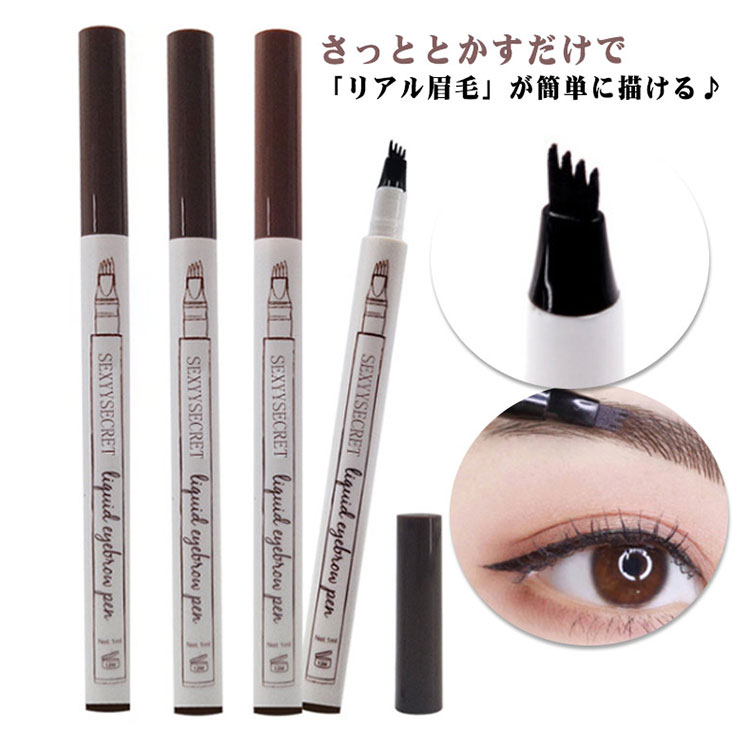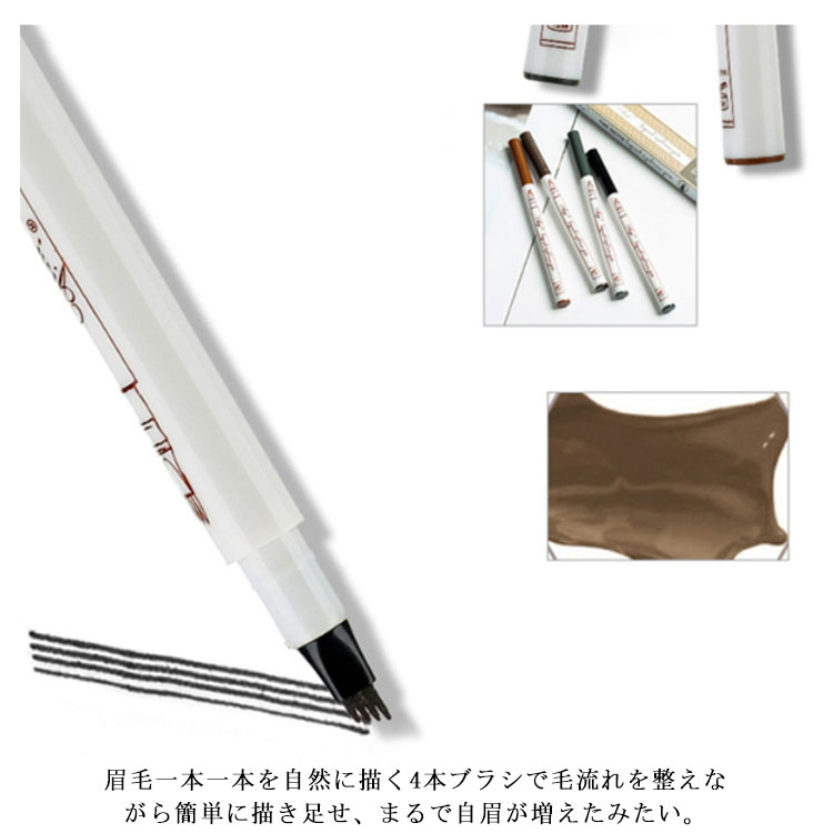 2本セット フォーク アイブロウ 簡単 リアル眉毛 落ちにくい 汗に強い ウォータープルーフ 4本に分かれたペン先 送料無料 スウェットプルーフ アイブロウ メイク 自然な仕上がり 栗色 ブラウン チャコールグレー ブラック