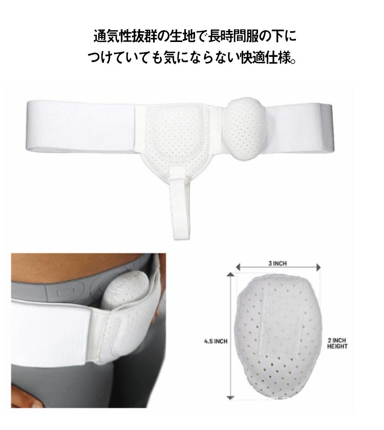 | 鼠径ヘルニアでお困りの方、必見!下腹部のふくらみ、下腹部の痛み、サポーターの蒸れやずれを解決。 マジックテープ仕様で圧迫調整?装着の調整がらくらく可能! 肉厚パットが優しく、しっかりサポート!パット裏はマジックテープで簡単に脱着可能! 通気性抜群の生地で長時間服の下につけていても気にならない快適仕様。 | |