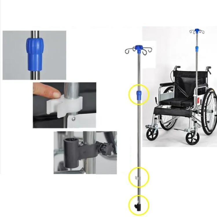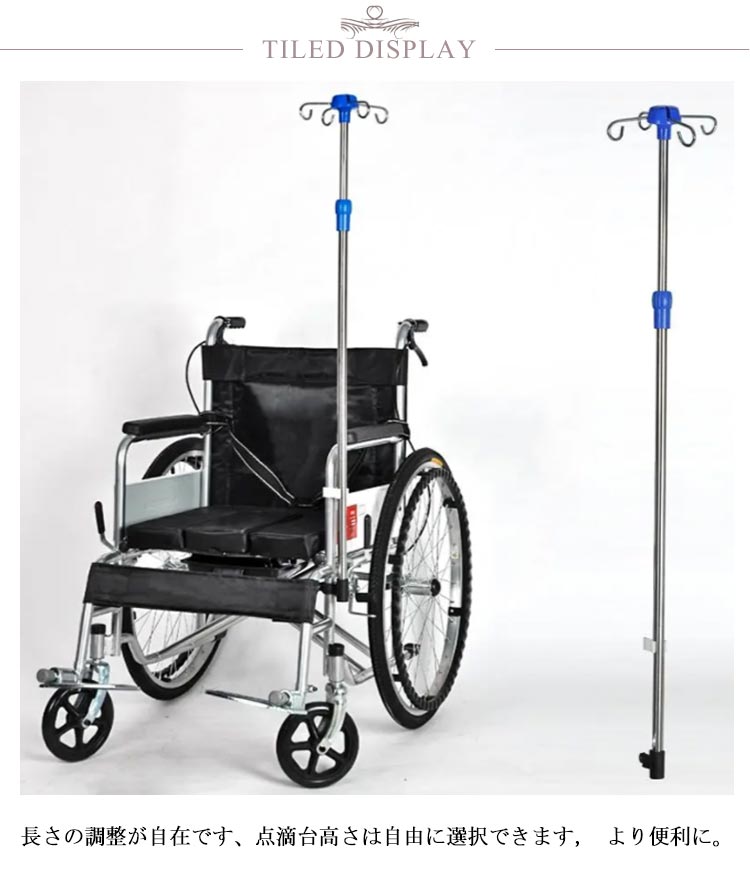 点滴スタンド 車椅子専用 IVスタンド点滴棒 伸縮可能 軽い 頑丈 耐用 スチール製 横乗り車椅子用 後方用 高齢者ホームケア 病院 クリニック