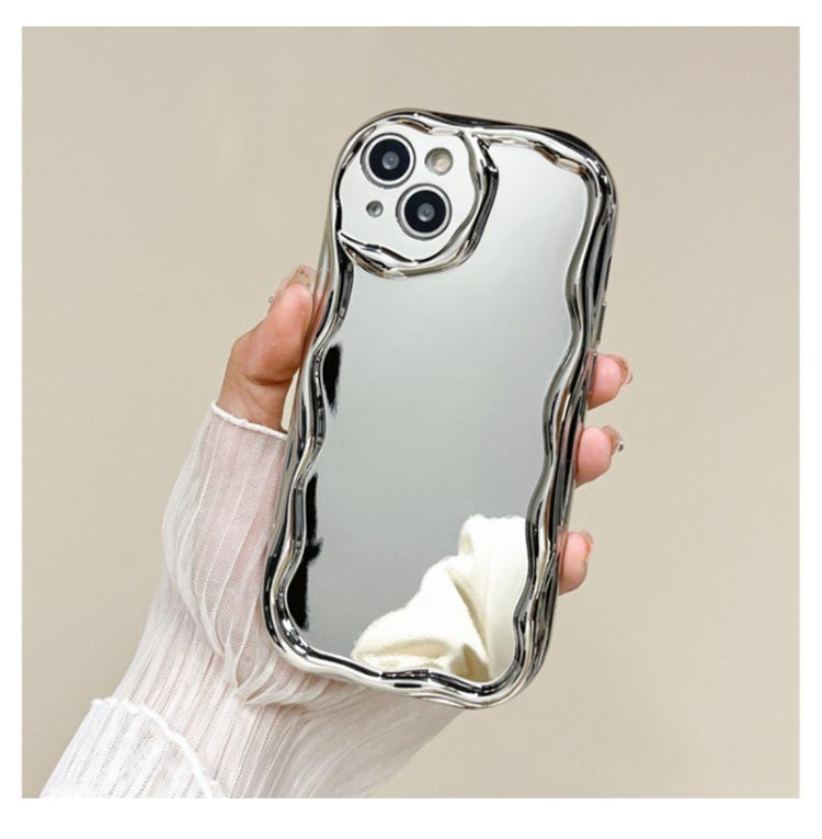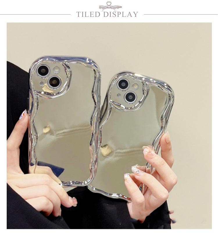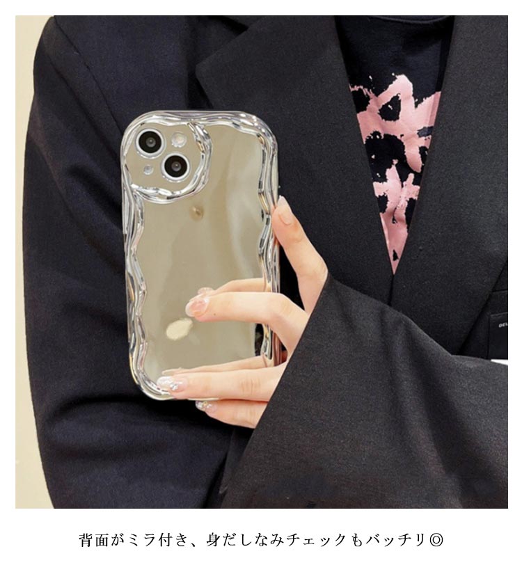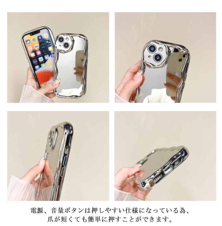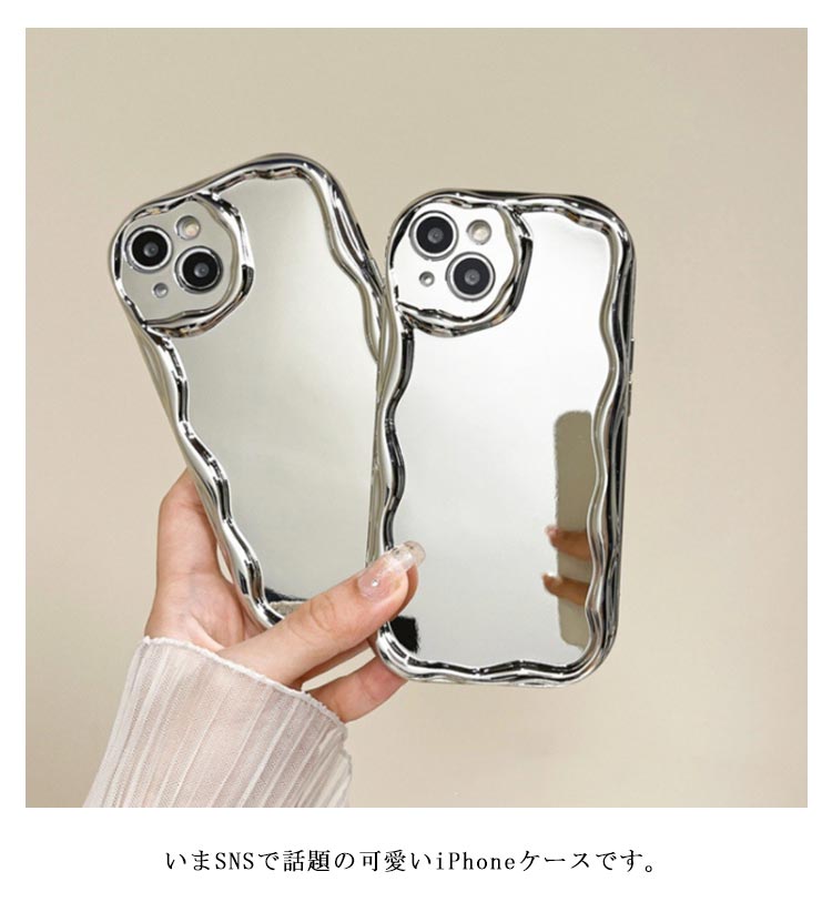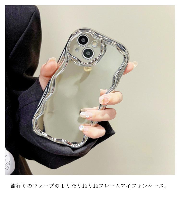 SNSで話題のiPhone15/14/13/12/11シリーズケース。いまSNSで話題の可愛いiPhoneケースです。【鏡付き】背面がミラ付き、身だしなみチェックもバッチリ◎【大人気】流行りのウェーブのようなうねうねフレームアイフォンケース。【押しやすい】電源、音量ボタンは押しやすい仕様になっている為、爪が短くても簡単に押すことができます。