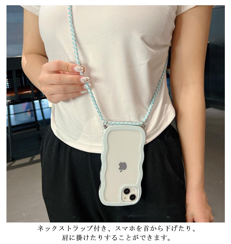 クリア iPhoneケース おしゃれ ショルダー かわいい iphone xs xr ケース クリア うねうね なみなみ ストラップ付き ショルダー付き iphone15 iphone14 iphone13pro max iphone12 斜め掛け 韓国 シリコン 耐衝撃 かわいい スマホケース