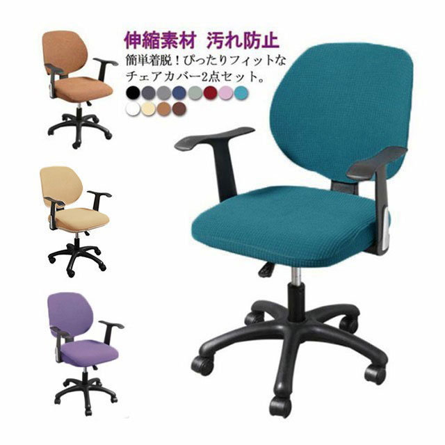 2点セット オフィスチェアカバー 椅子カバー オフィス用 事務椅子 チェアカバー 伸縮素材 座面と背もたれ 洗濯可能 昇降式椅子座面カバー 着脱簡単 セパレート 無地 おしゃれ 破れ隠し 汚れ防止 送料無料