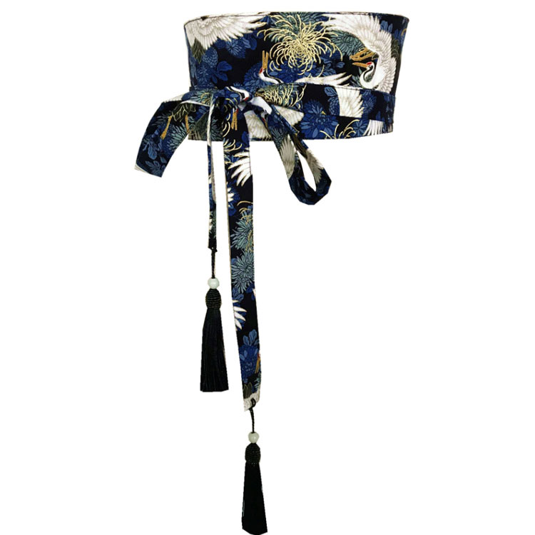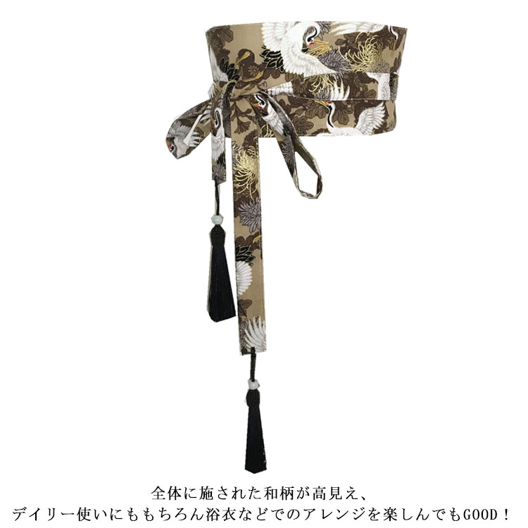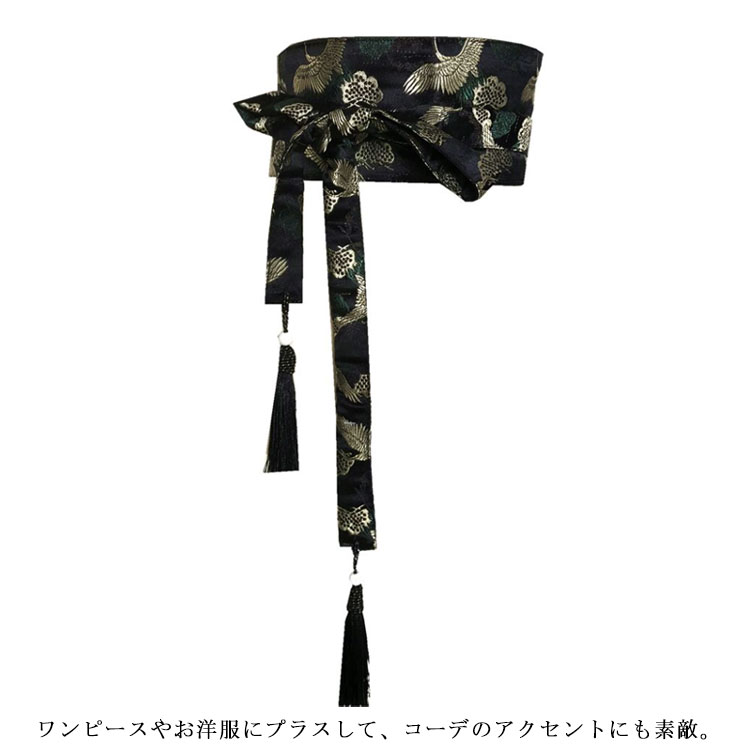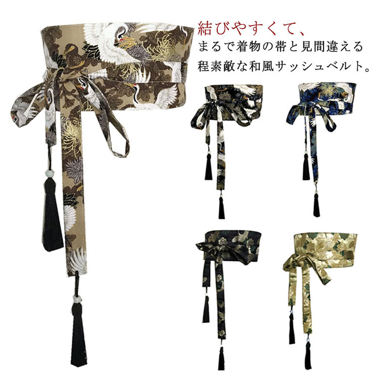 サッシュベルト 和風 和柄 着物 帯 太ベルト 鶴 和風ベルト おしゃれ 帯ベルト 総柄 大人 レディース 送料無料 衣装 帯風ウエストベルト コルセット ウエストマーク カジュアル モダン 着物風 フリンジタッセル
