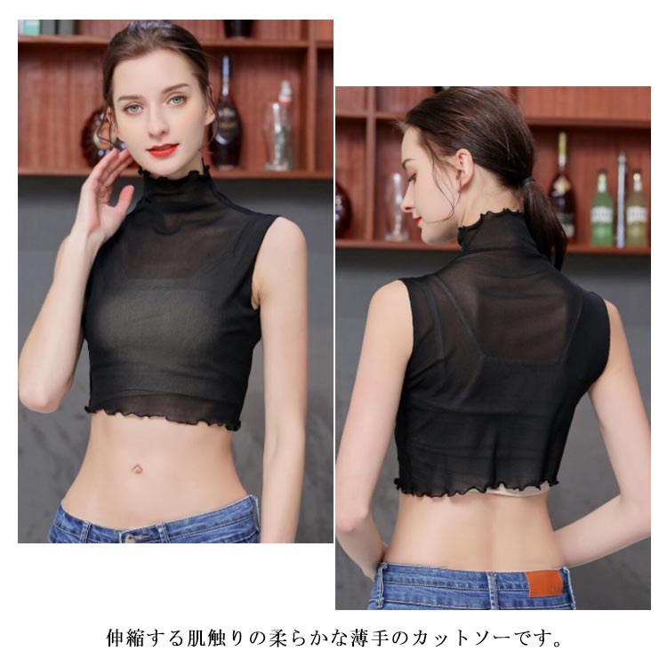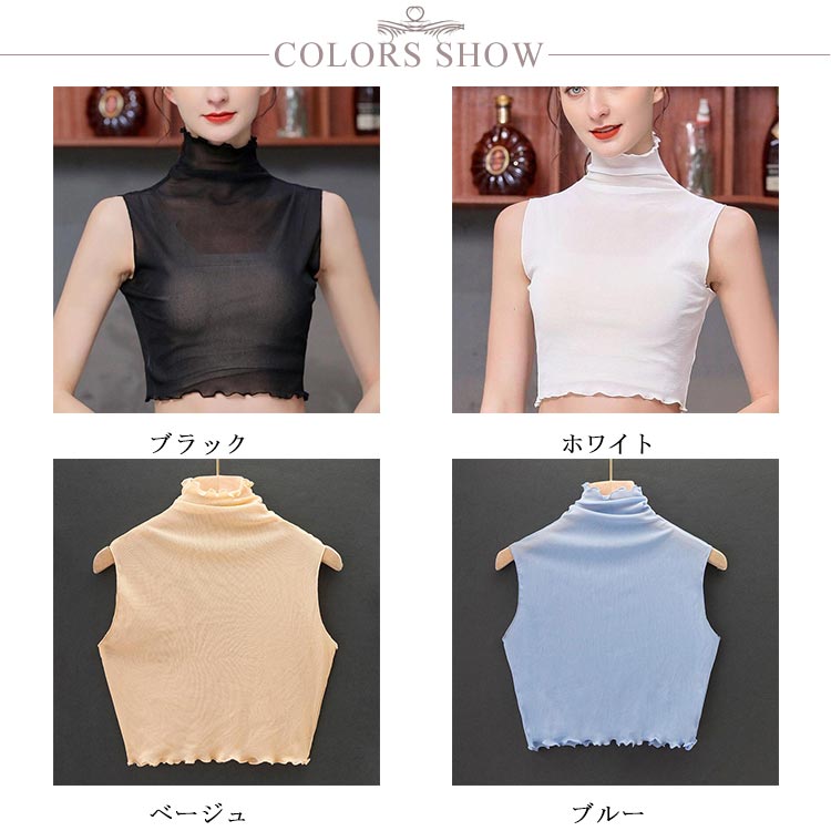 シースルー カットソー レース ハイネック 付け襟 タートルネック フリルネック レイヤード風 タートル レイヤード 重ね着 インナー レディース レースハイネック ノースリーブカットソー つけ襟 つけえり 女性 グッズ