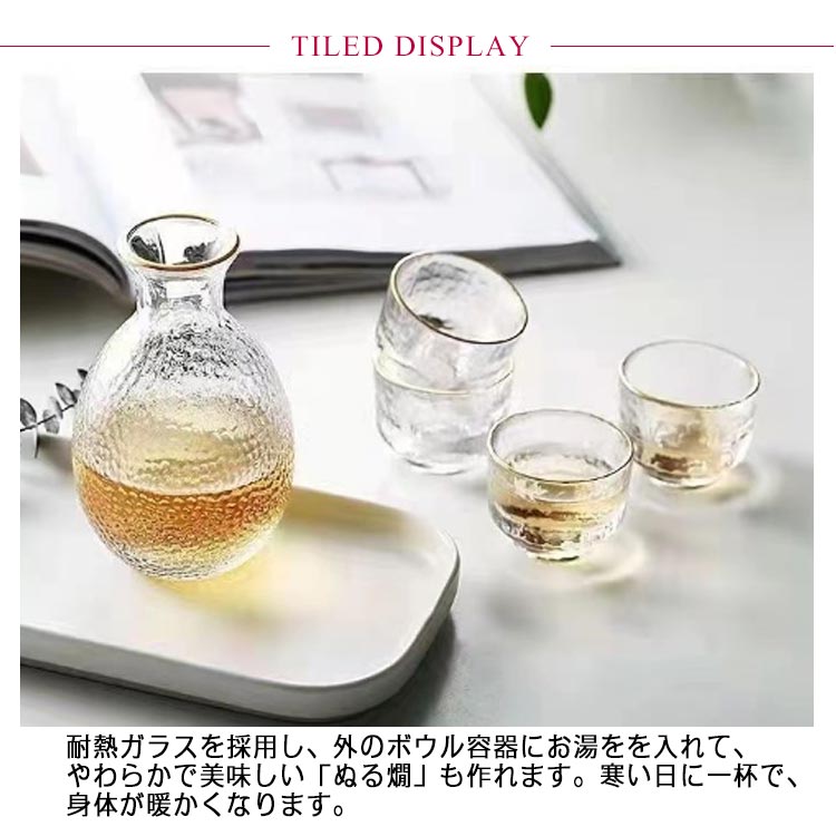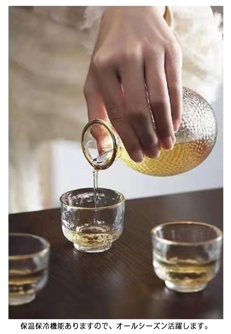 おちょこ 徳利 セット 6点セット ガラス 半透明 酒器セット 酒燗器 熱燗器 お猪口 ぐい呑み とっくり 熱燗 冷酒器 おしゃれ 高級感 酒器 日本酒 和酒 焼酎 冷酒 燗酒 温め 温め器 保温 保冷 誕生日 プレゼント ギフト 父の日 敬老の日 【送無】