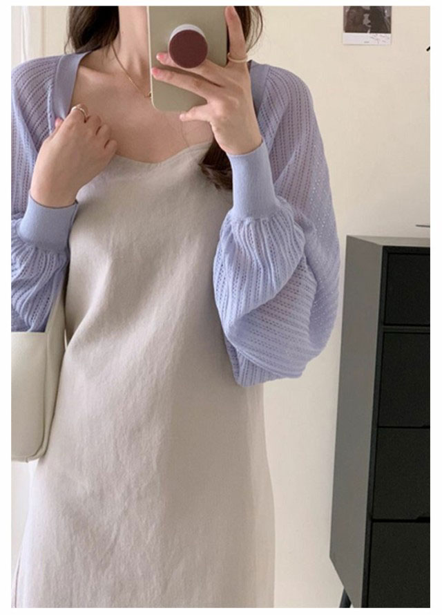 カーディガン ボレロ レディース 春 夏 トップス サマーニット ニットボレロ サマーカーディガン ショート丈 羽織り レイヤード ボリューム袖 ボリュームスリーブ UV 紫外線 対策 カジュアル 体型カバー S M L XL 2XL 3XL