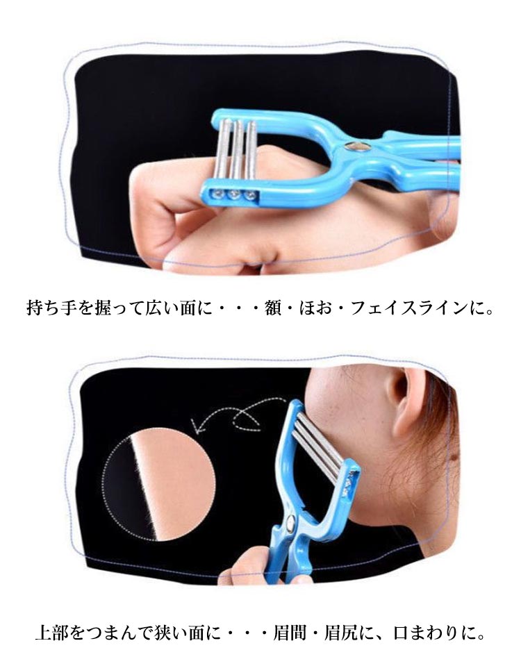 コロコロ回転させることで、うぶ毛をからめ取る除毛器。しなやかコイルでフェイスラインにフィット、細部までキレイに仕上げられます。持ち手を握って広い面に・・・額・ほお・フェイスラインに。上部をつまんで狭い面に・・・眉間・眉尻に、口まわりに。入浴前に・メイク前に。化粧ノリが段違いに変わります!!パッドは繰り返し使え旅行先や出張先やビーチなどに持っていくのにも超便利。【使用方法】(1)洗顔等で、肌を清潔な状態にしてください。(2)軽く肌に当て下から上へとゆっくり転がしてください。(3)脱毛後は顔を水で軽く洗い流し、冷たいタオル等(清潔なもの)で冷やしてください。