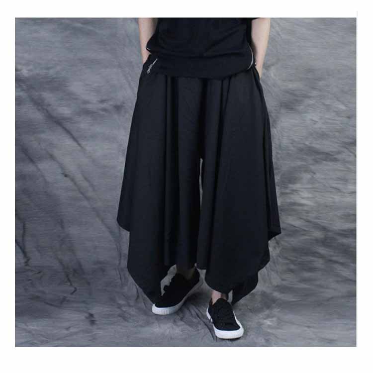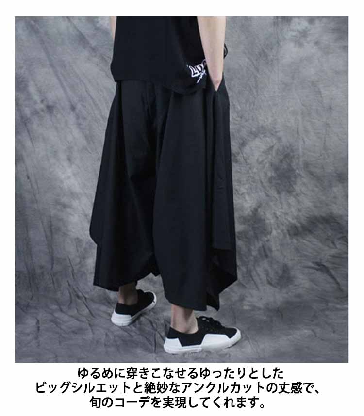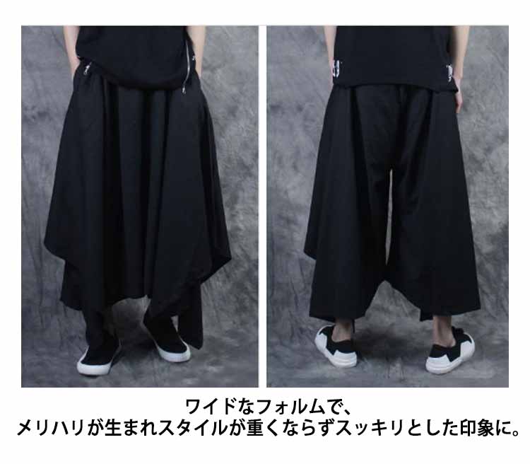 揺れる ワイドパンツ メンズ パンツ 袴パンツ 九分丈 ガウチョパンツ アシンメトリー フレアパンツ 大きいサイズ 体型カバー カジュアル 春夏 紐 ストリート S M L XL 2XL
